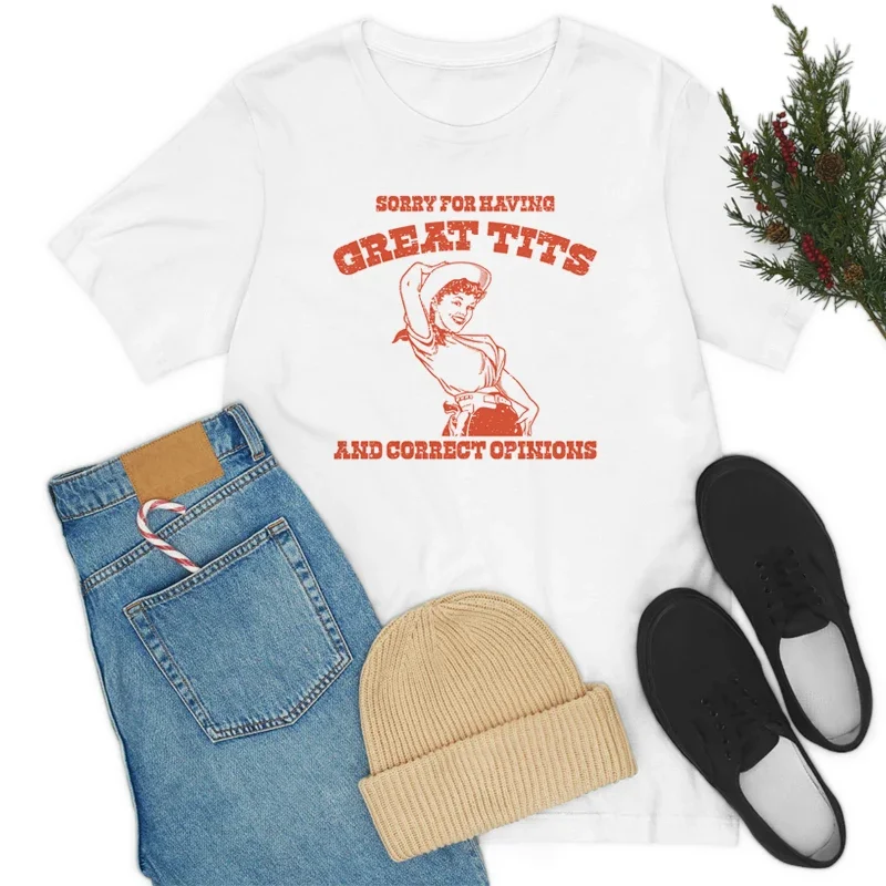 Feminism Sorry for Great Tits Graphic Tops Funny Meme Short Sleeve T Shirt Cowgirl Retro Western Country Tshirts Aesthetic Tops