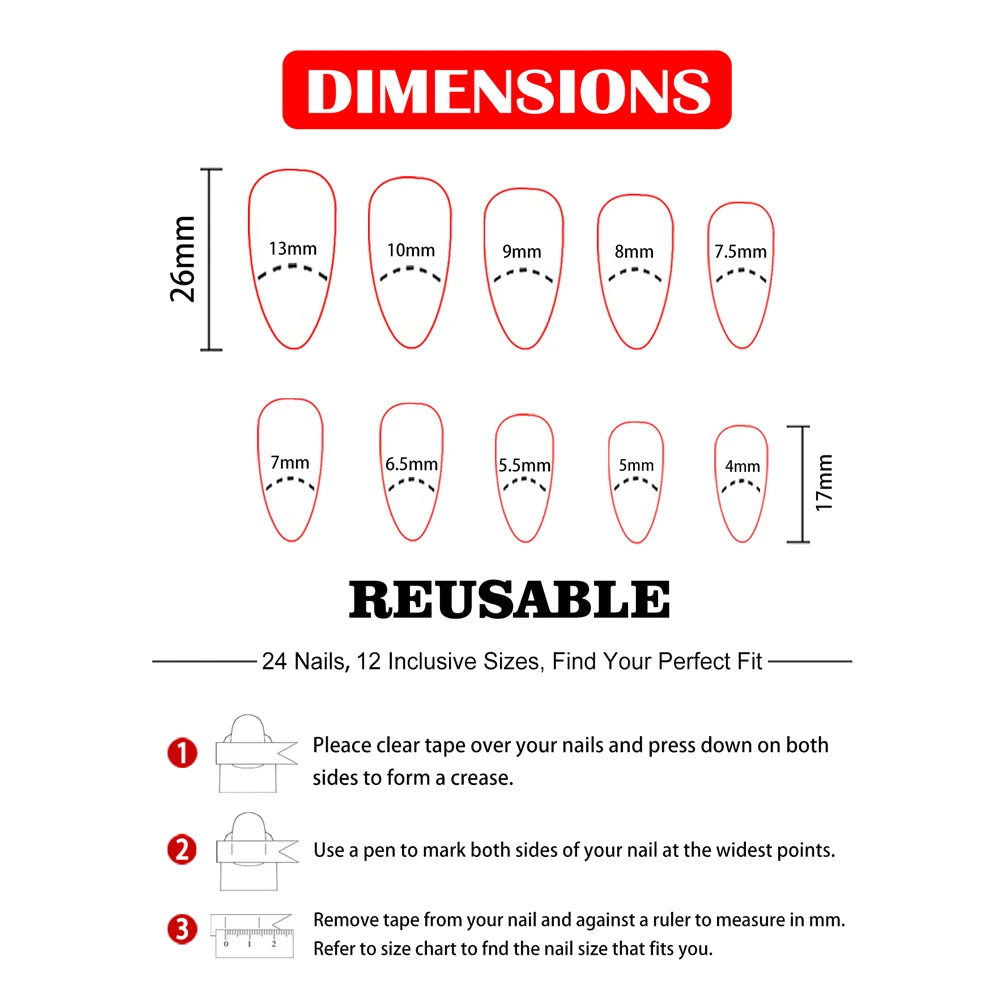 Wide Applications: Press on nails are perfect for special occasions like prom, party, birthday, wedding, dating. Also suitable for holidays like Valentine’s Day, Christmas etc. A great gift idea for girlfriends, sisters, wife, family, friends, etc