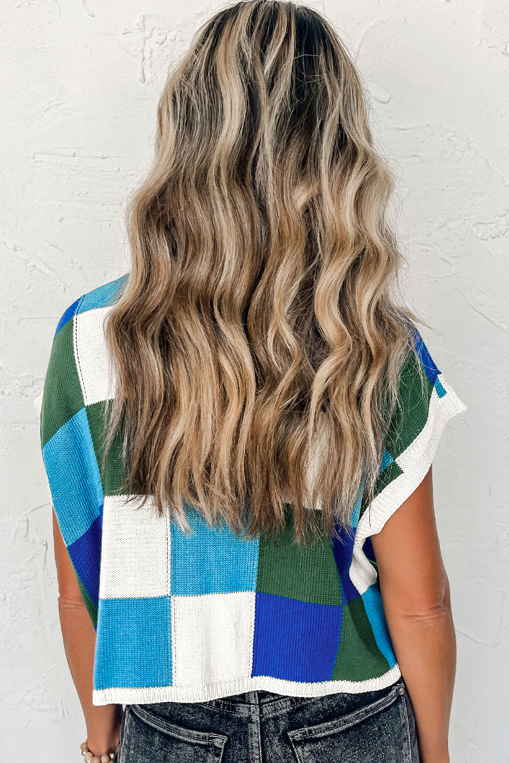 Grapefruit Orange Color Block Cap Sleeve Sweater