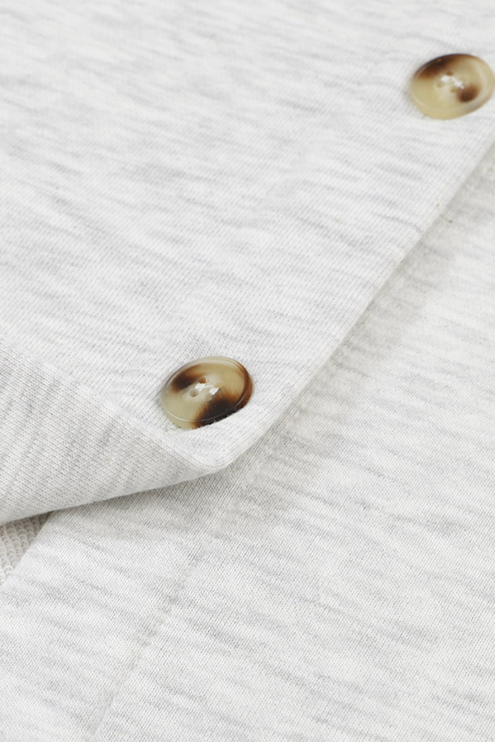 Gray Button Up Contrast Knitted Sleeves Hooded Jacket