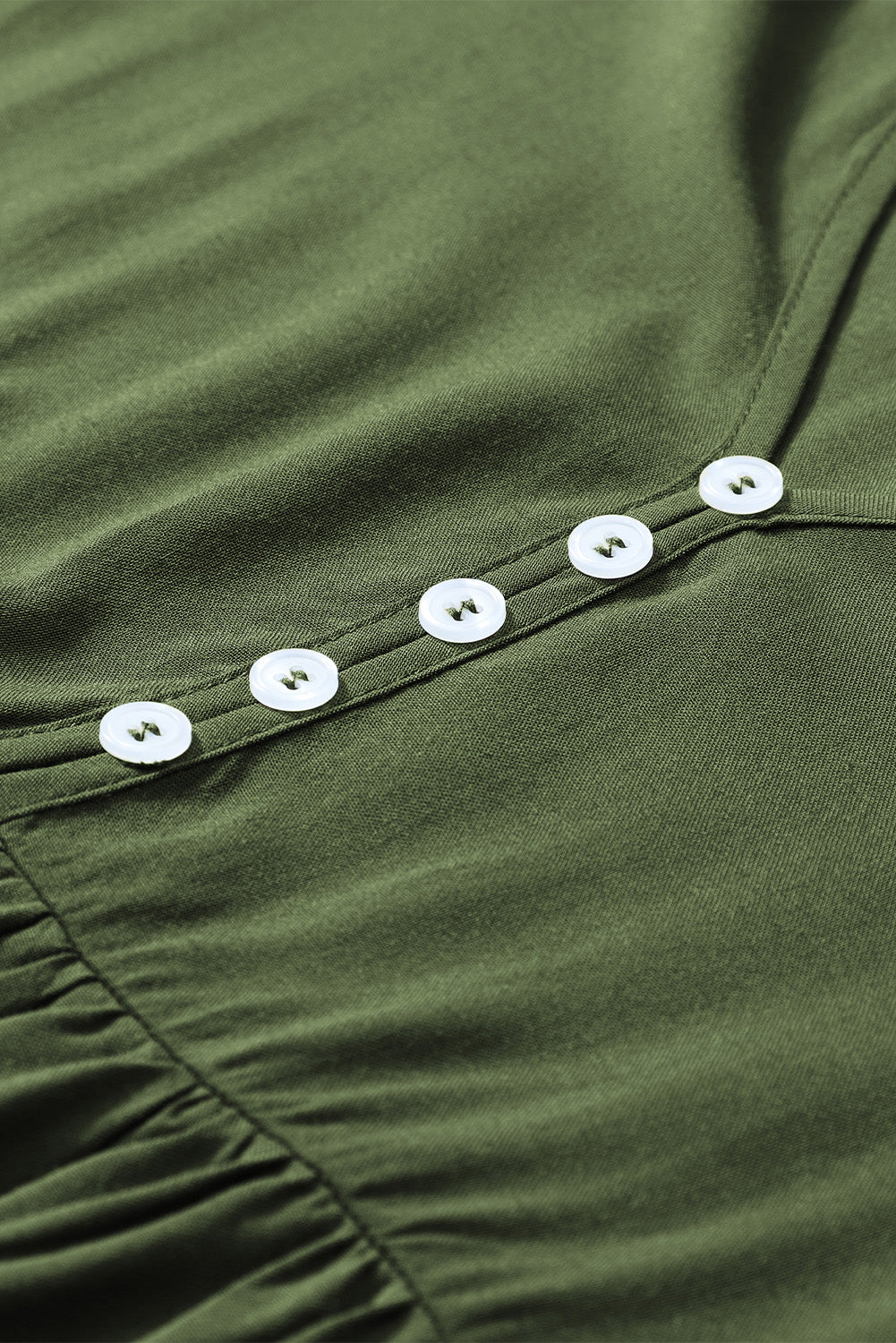 Green Lace Puff Sleeve Buttoned Tiered Ruffled Mini Dress