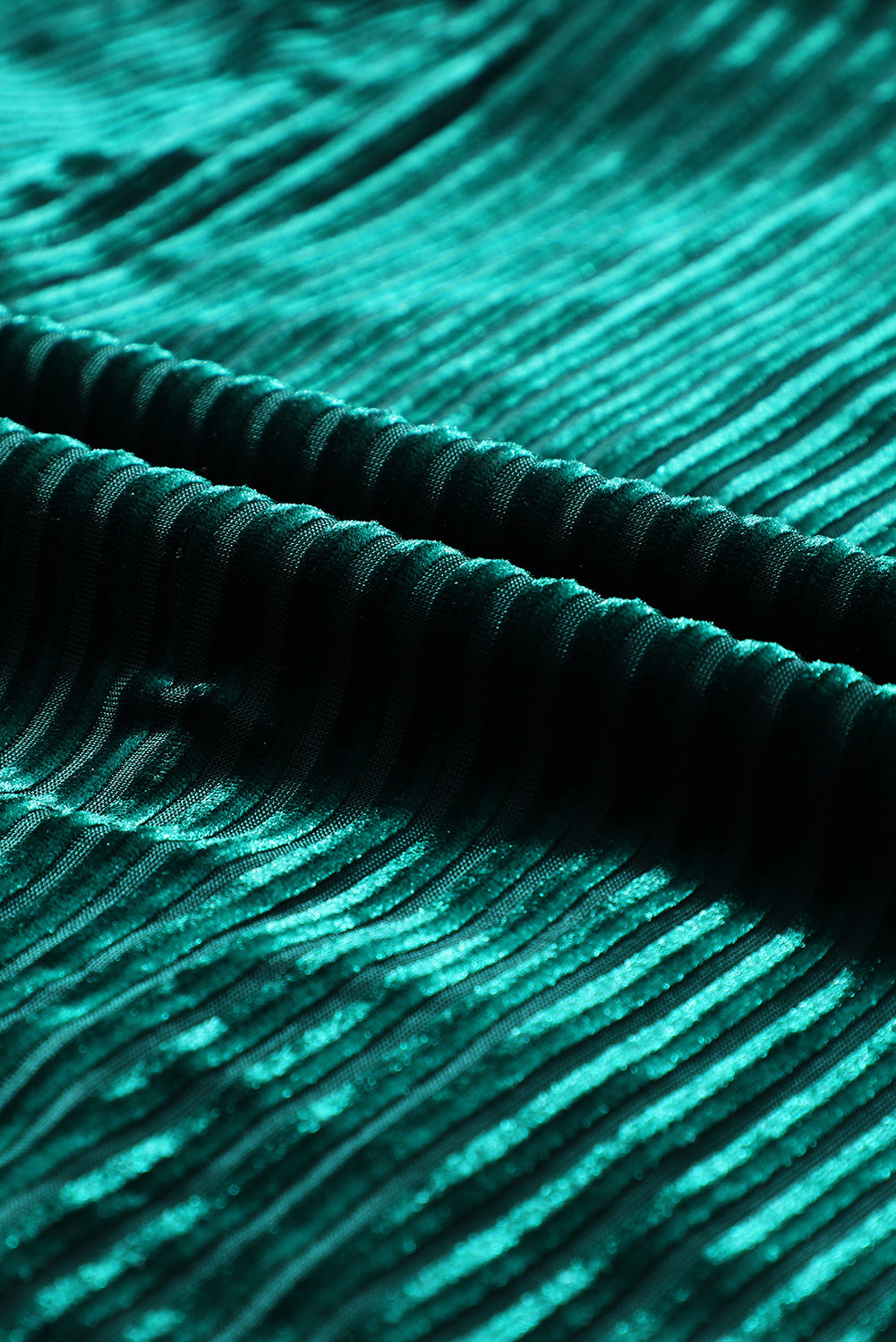 Green Tie Back Square Neck Velvet Babydoll Dress