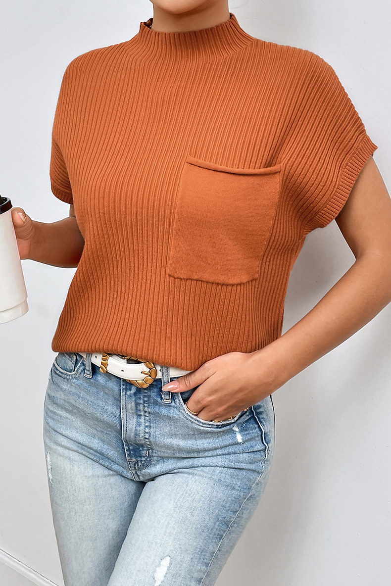 High Collar Casual Easiest for Match Thread Half Sleeve Top Pullover