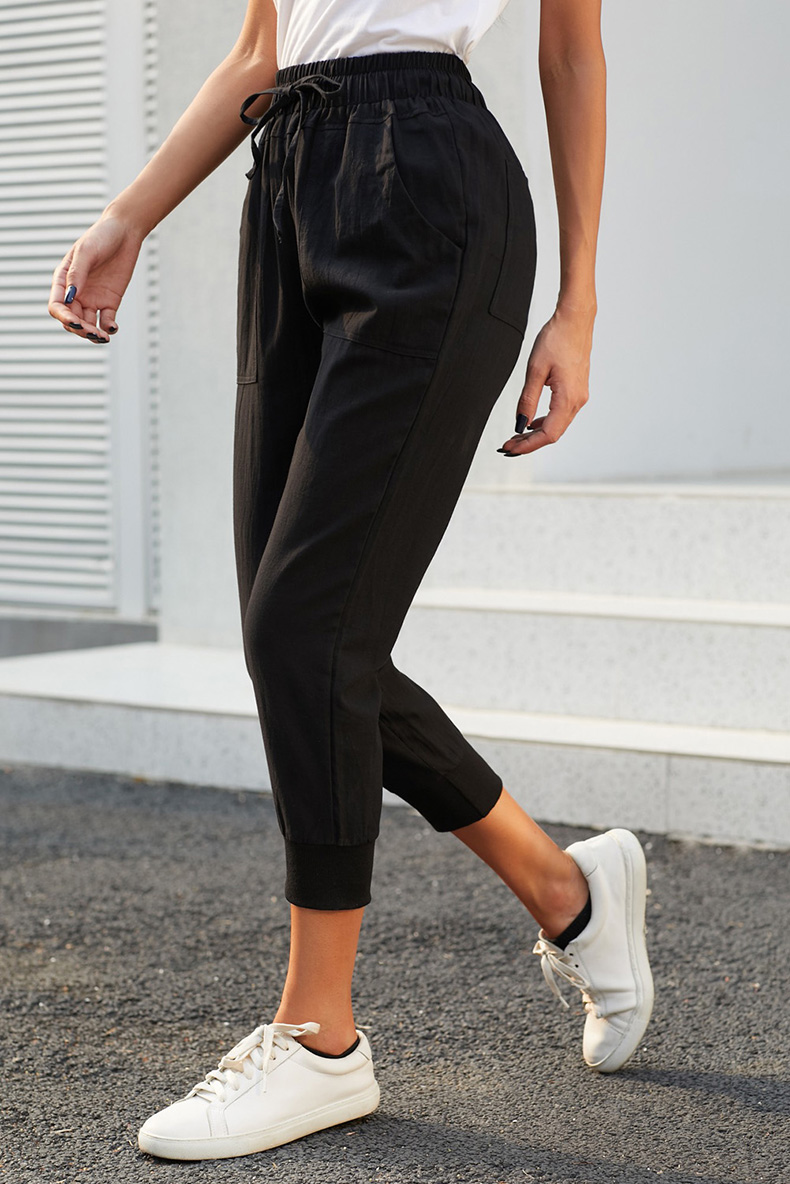 High Waist Ankle-Tied Ankle-Length Pants with Black Lace