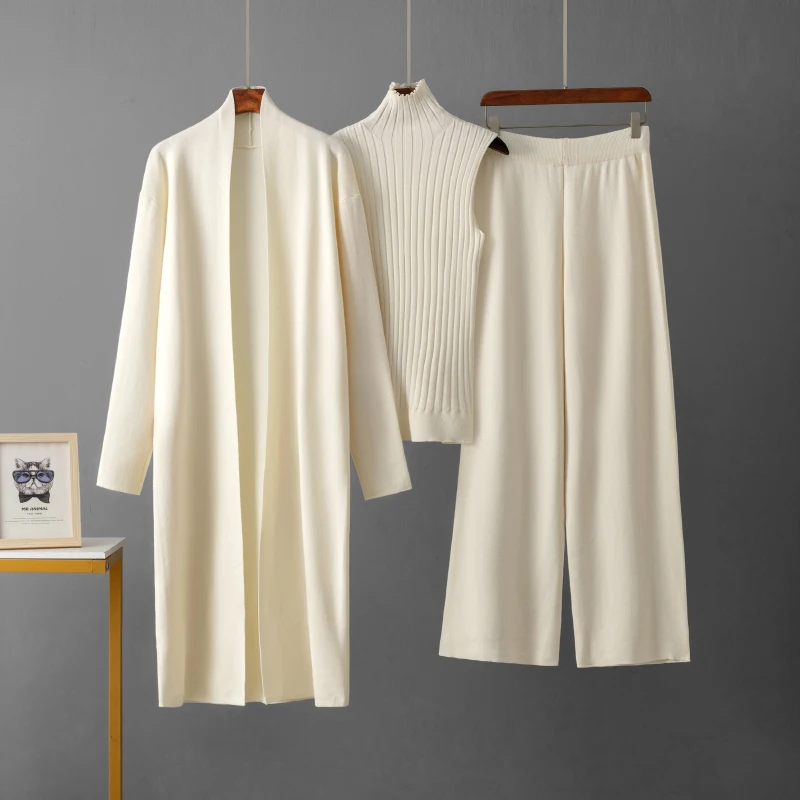 HLBCBG Autumn 3 Piece Women Cardigan Tracksuits Fashion Knitted Pants Sets Ladies Sweater Suit Vintage Fashion Ladies 3 Pieces