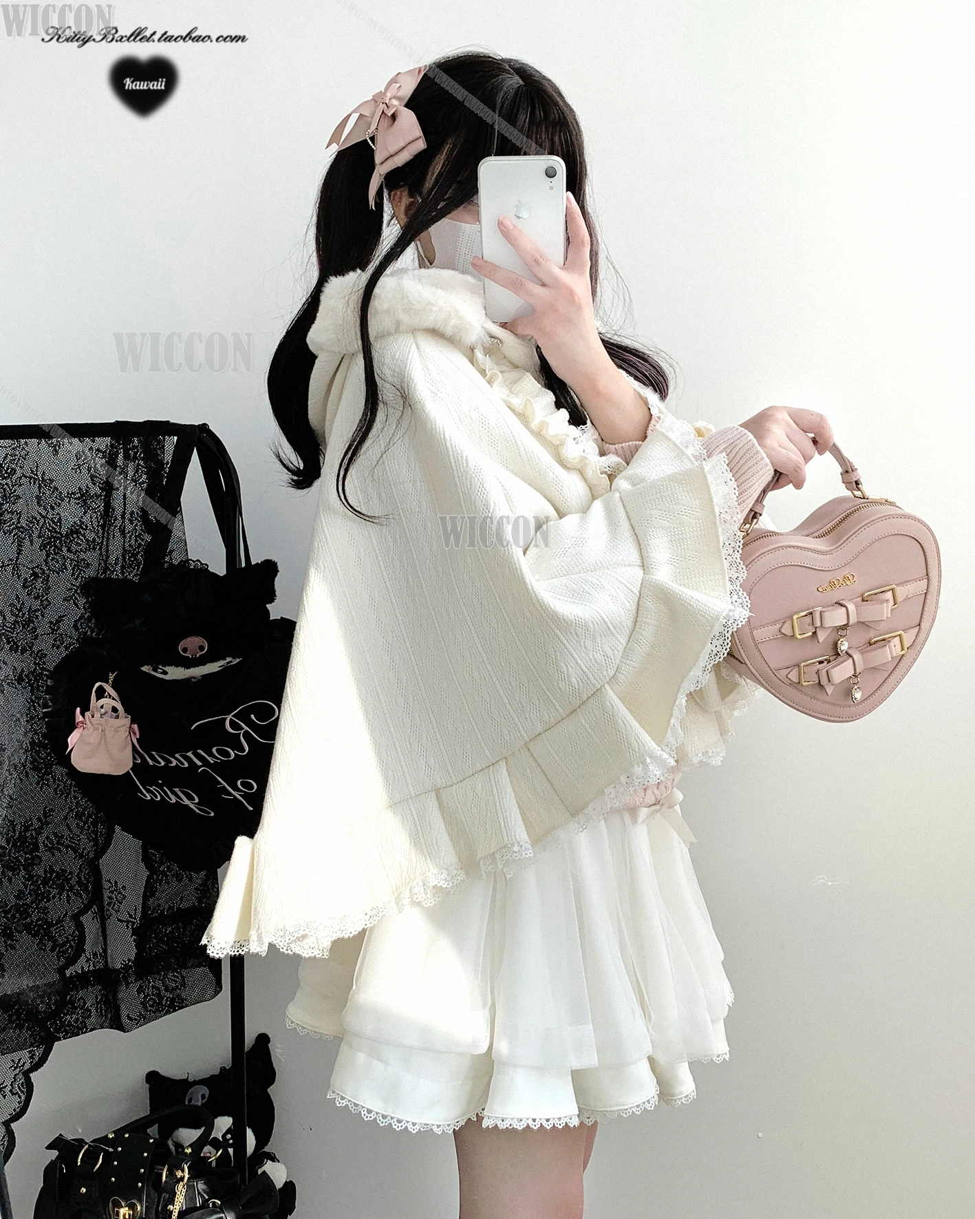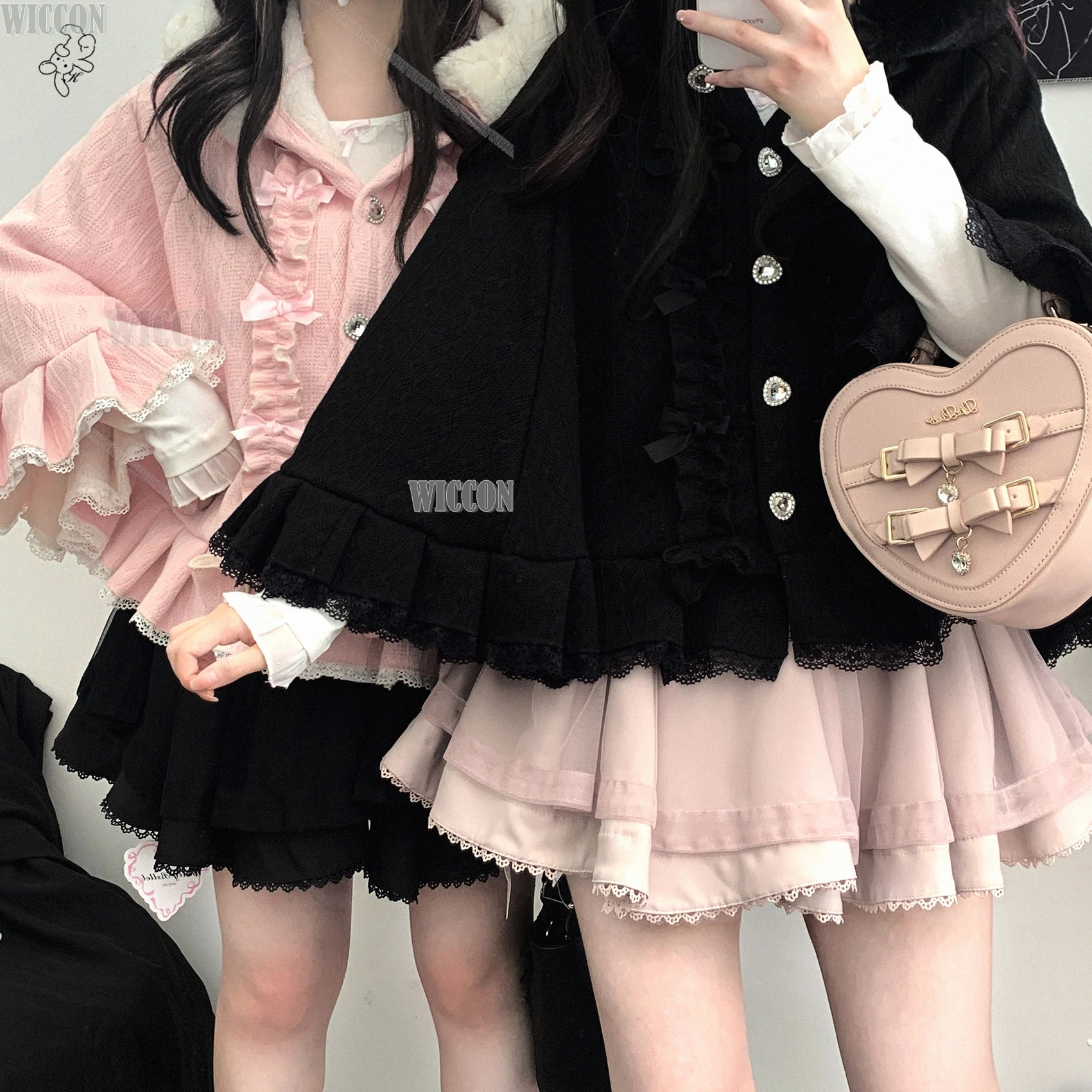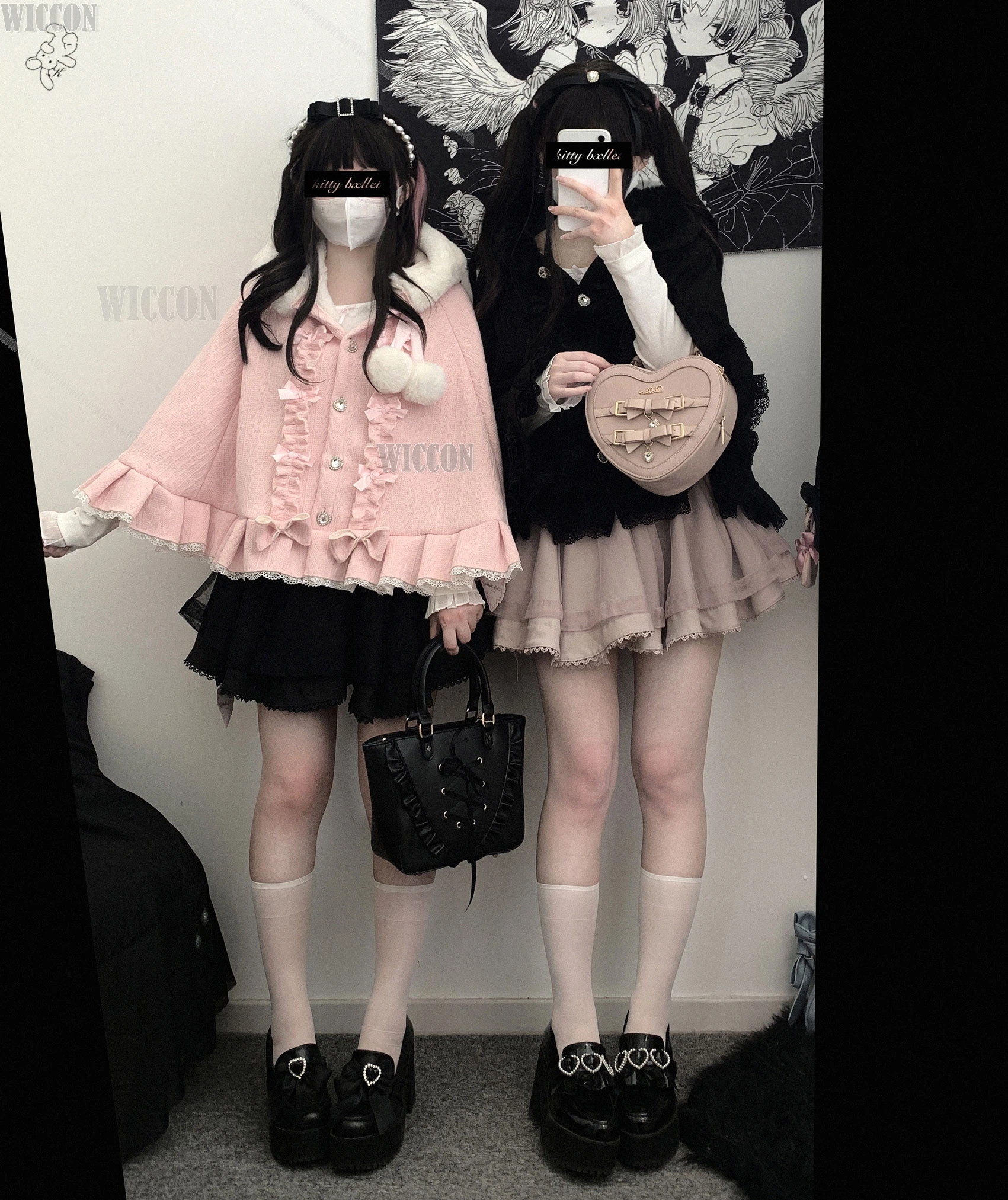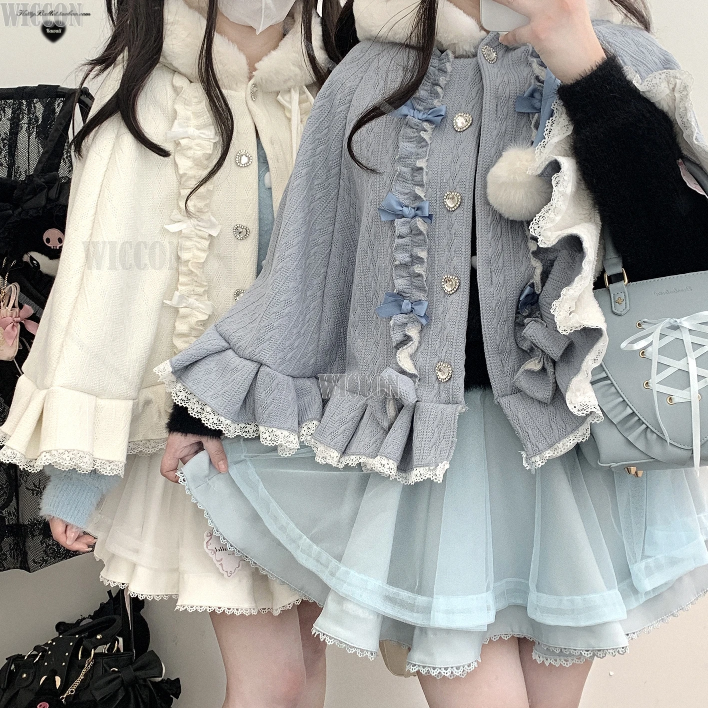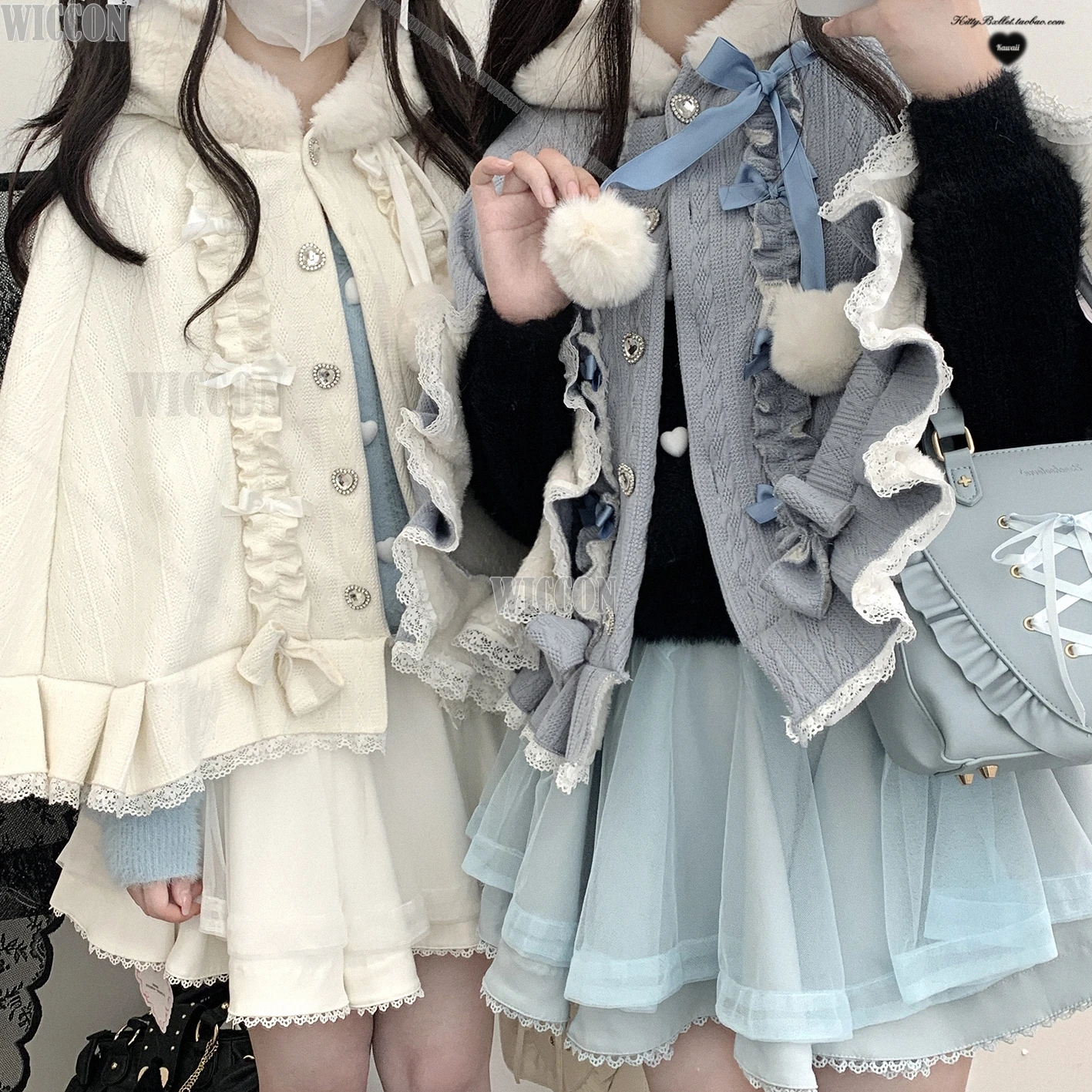 Jirai Kei Pompon Hooded Cape Cosplay Costume Cute Kawaii Falbala Cloak Winter Dress Girl Women Christmas Holloween Customized