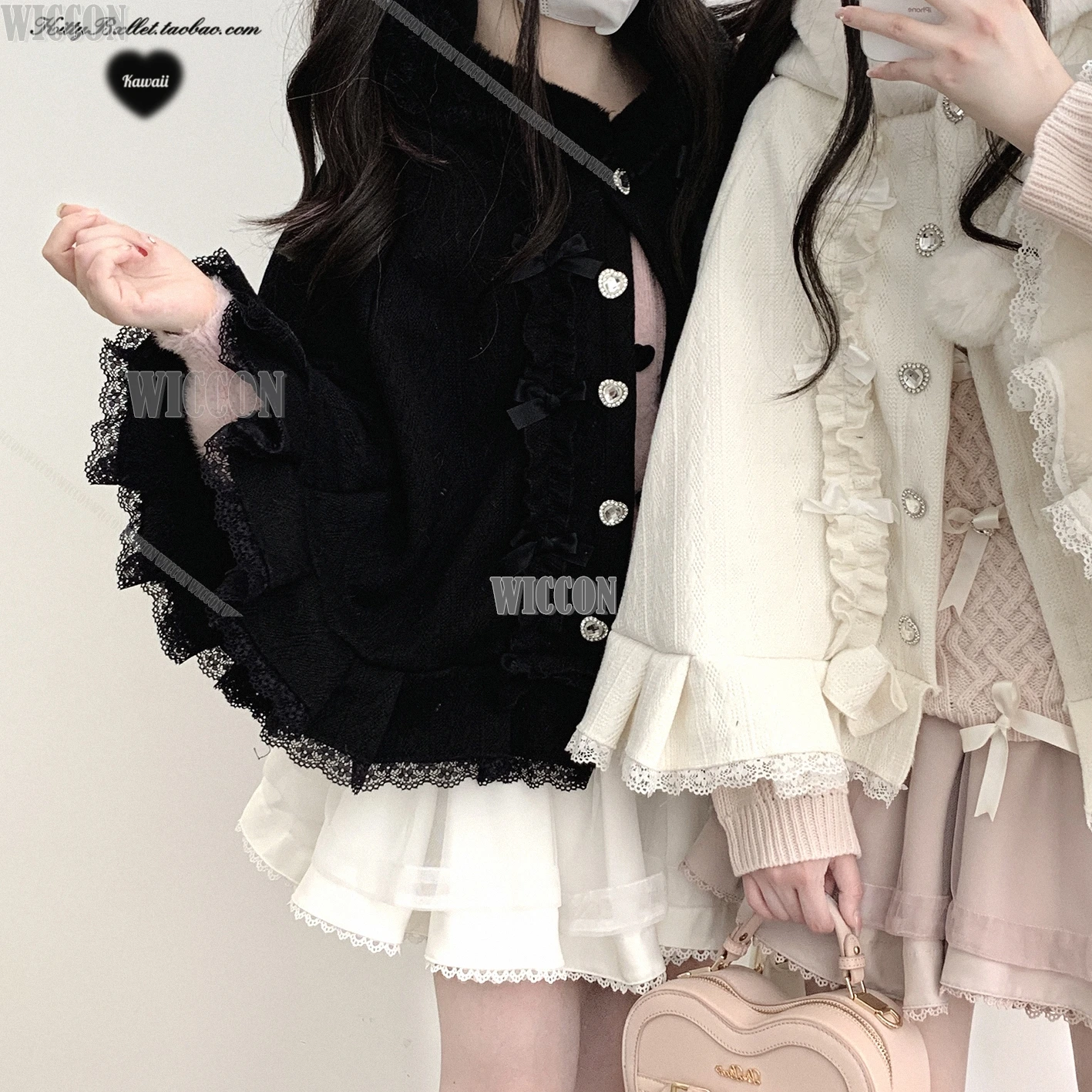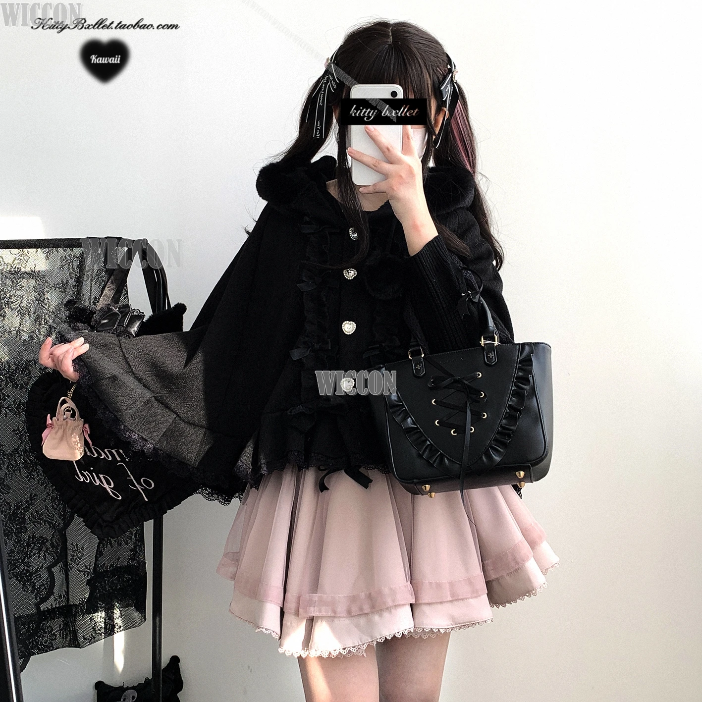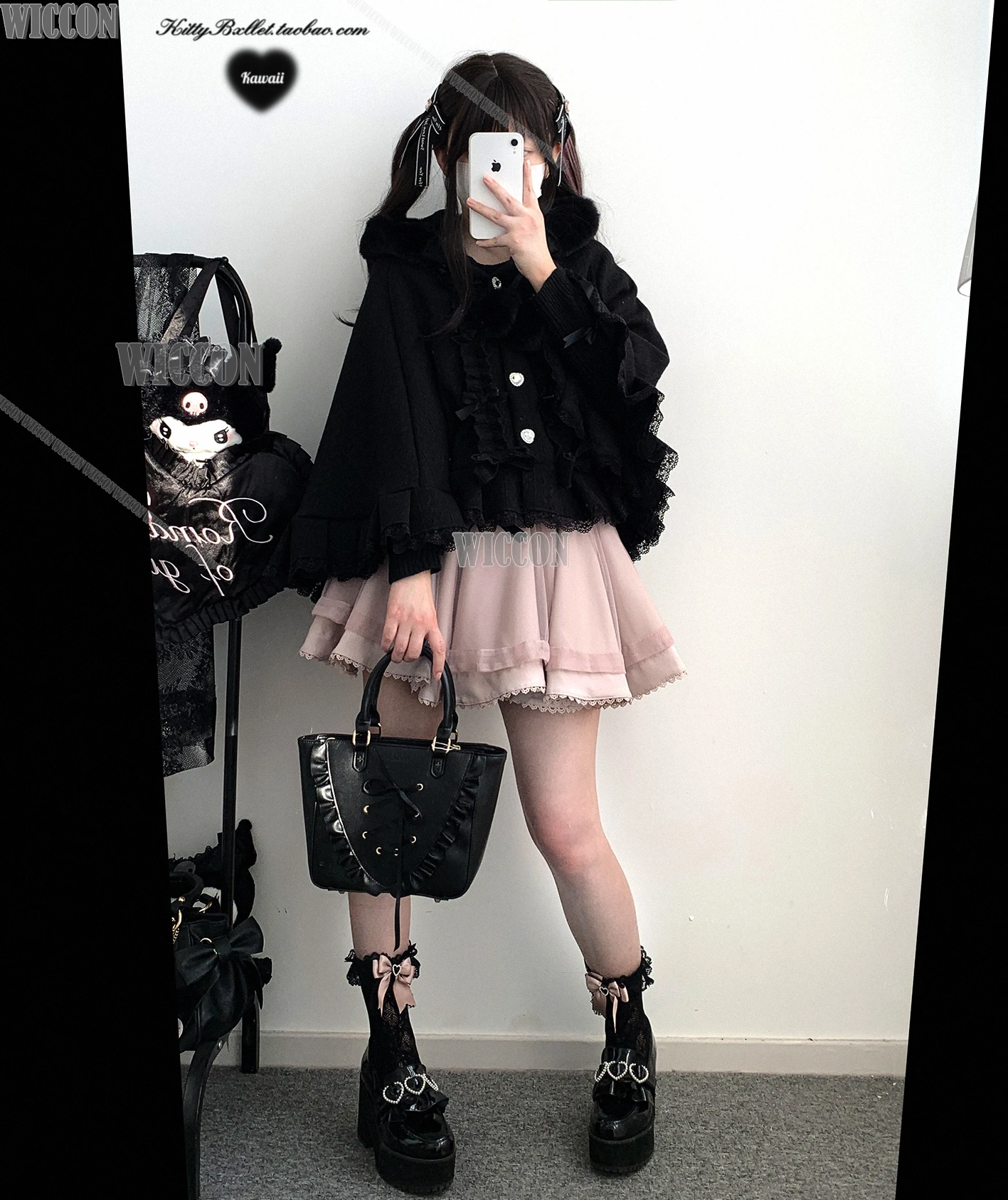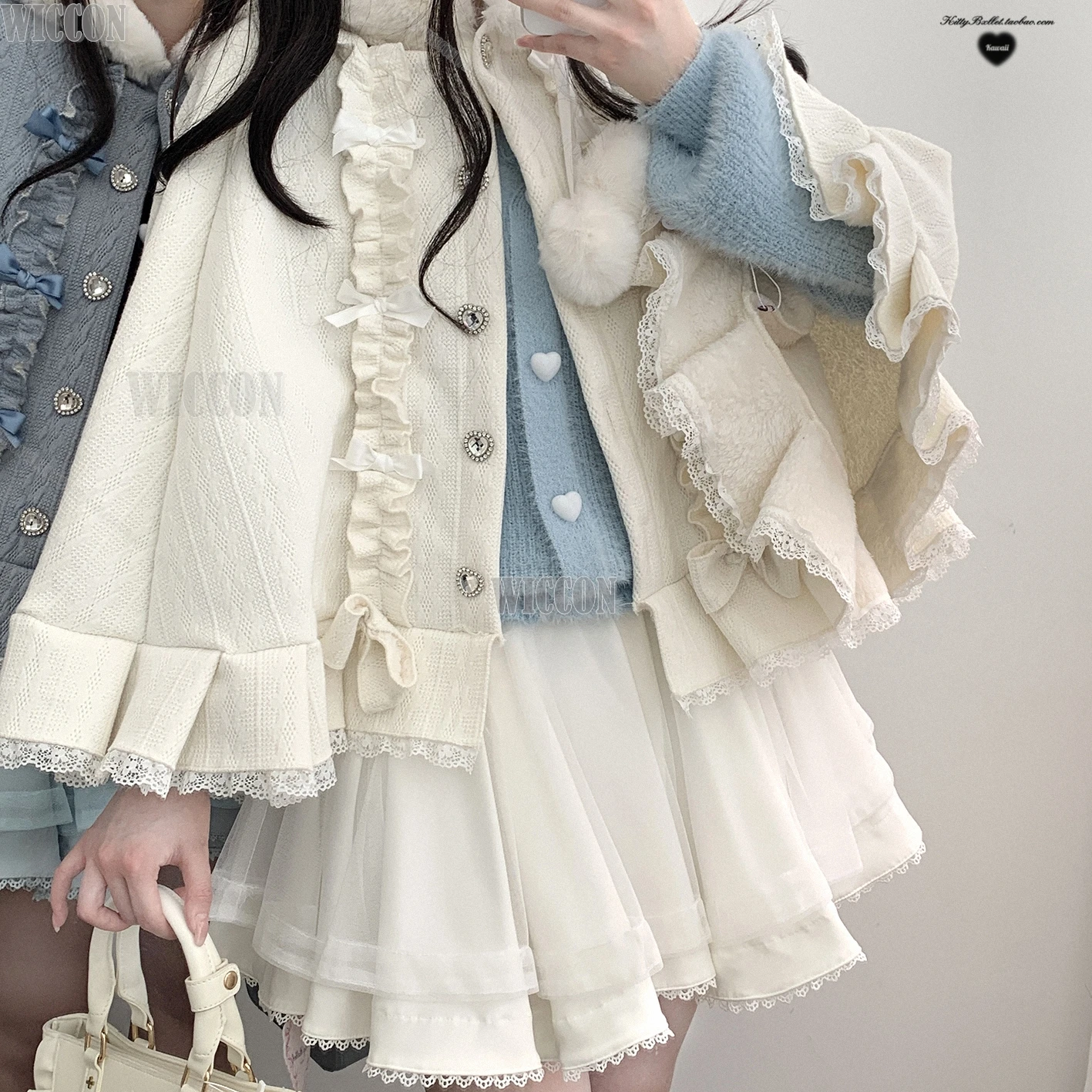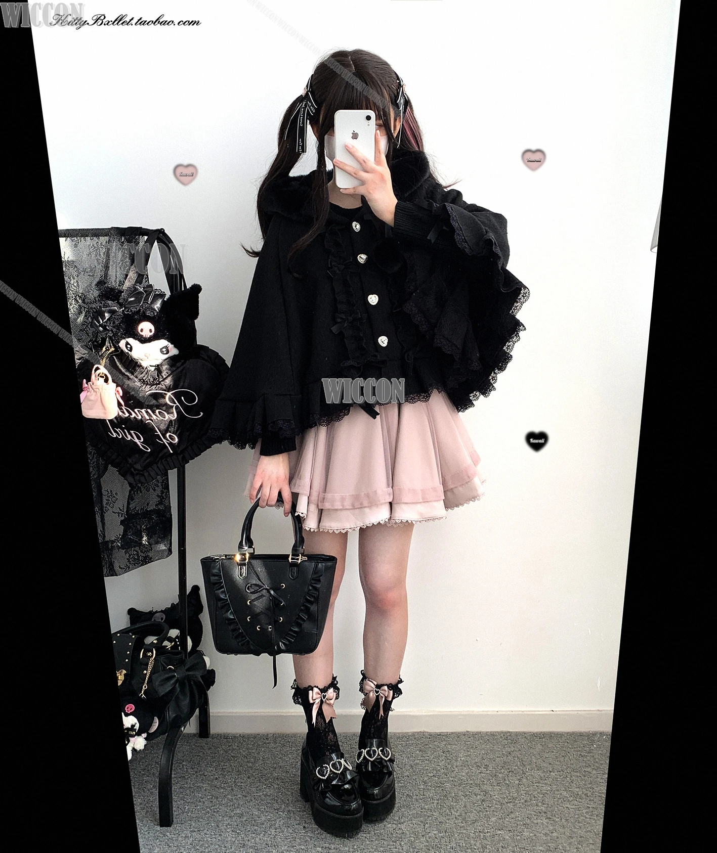 Jirai Kei Pompon Hooded Cape Cosplay Costume Cute Kawaii Falbala Cloak Winter Dress Girl Women Christmas Holloween Customized