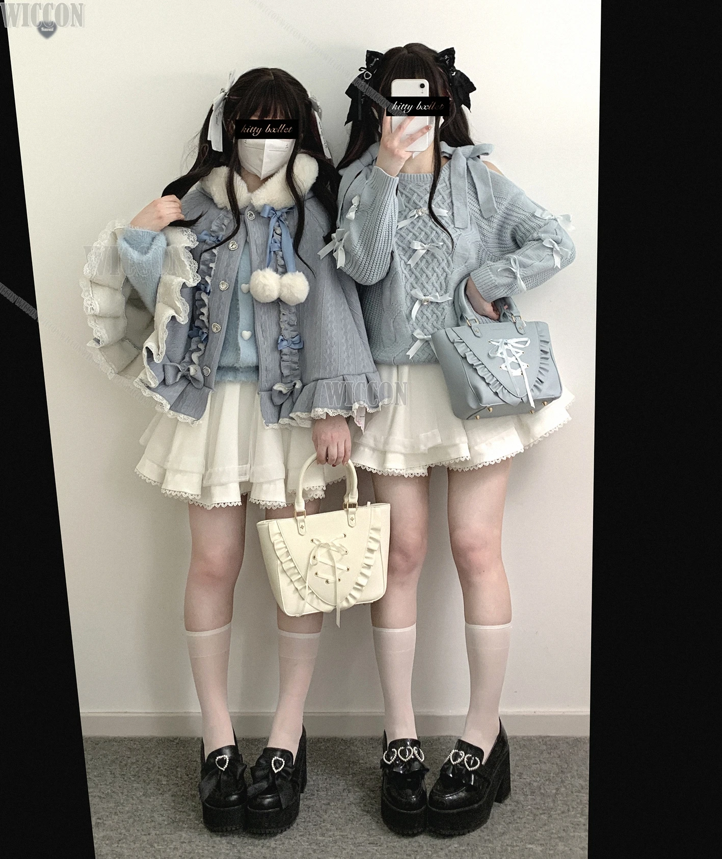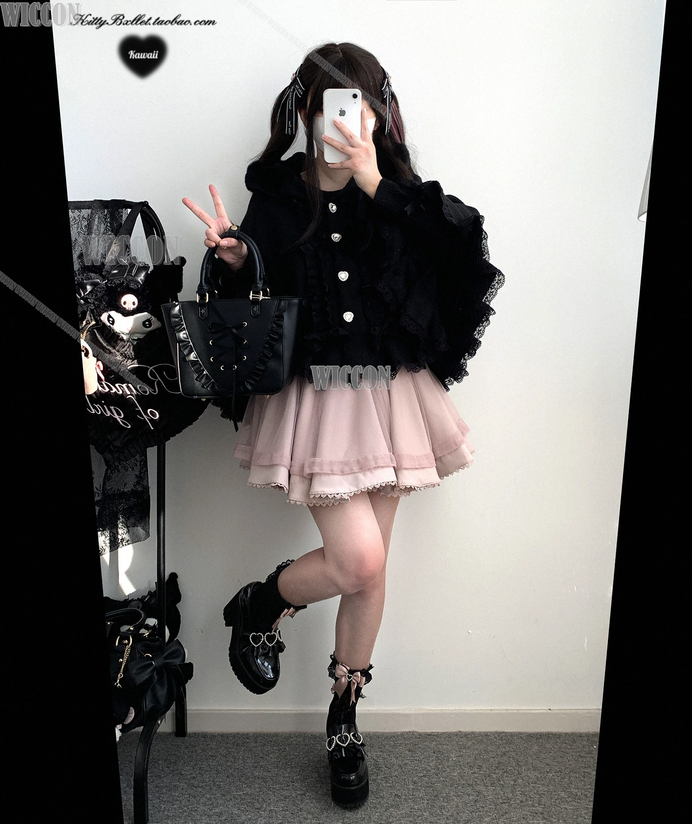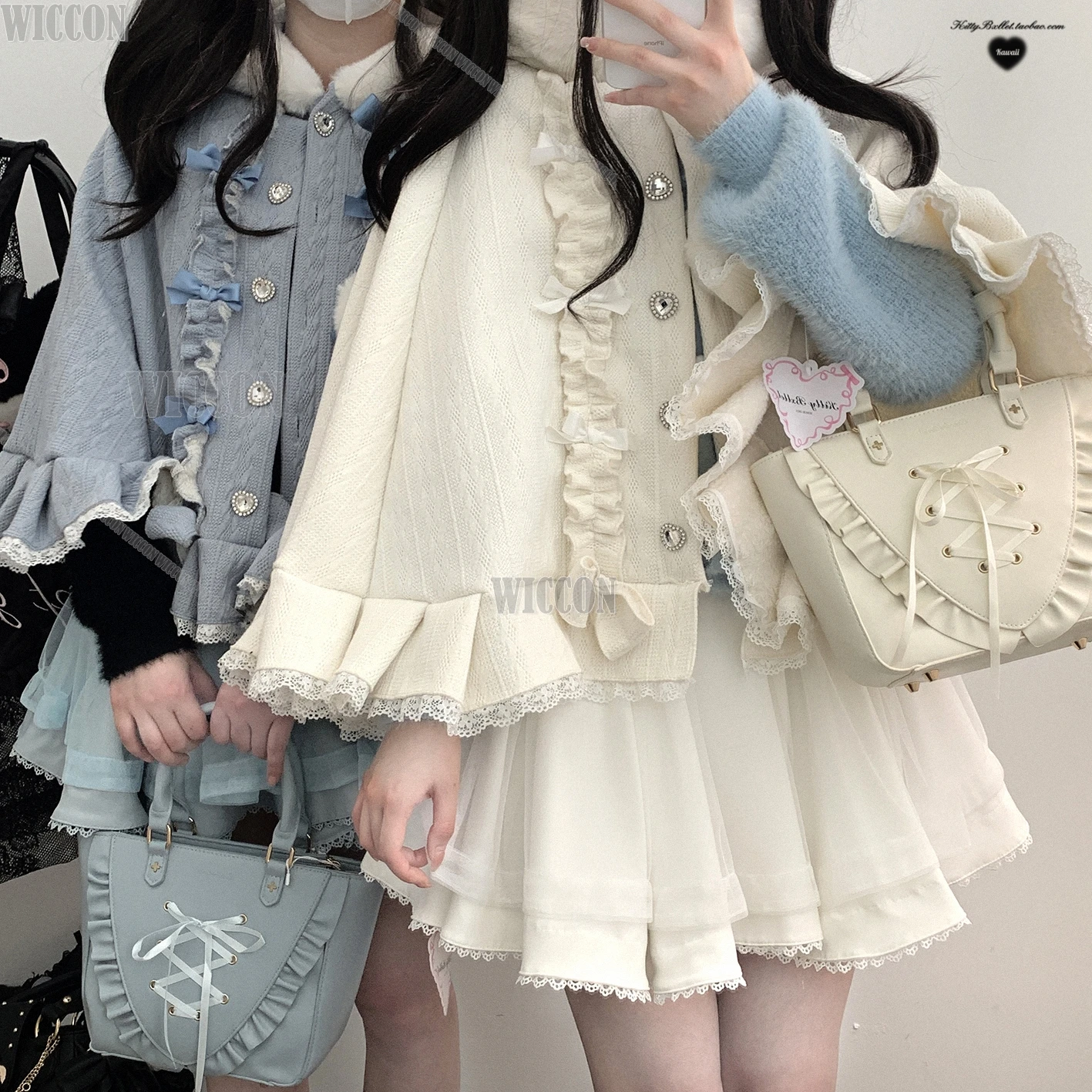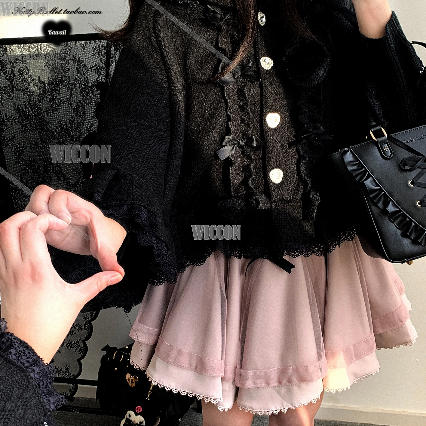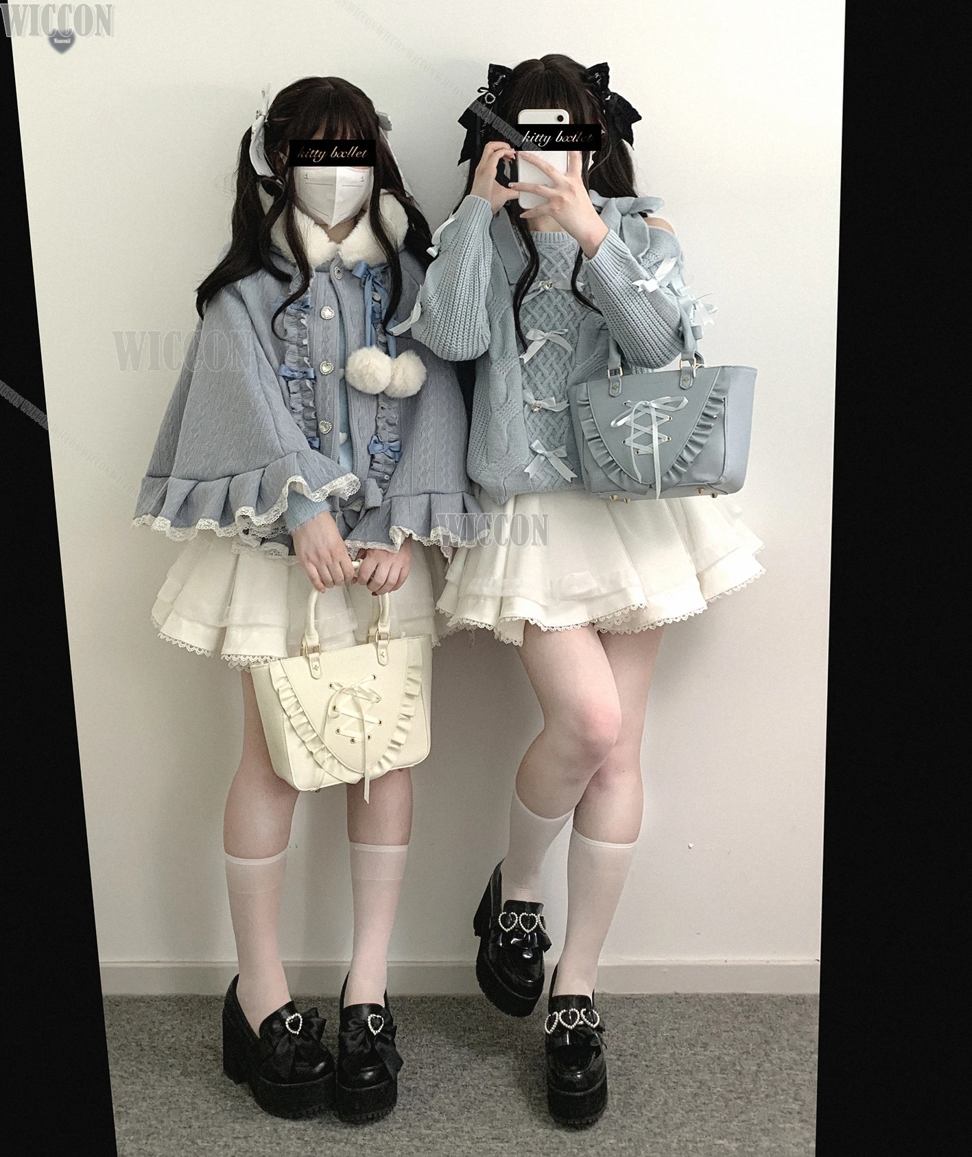 Jirai Kei Pompon Hooded Cape Cosplay Costume Cute Kawaii Falbala Cloak Winter Dress Girl Women Christmas Holloween Customized