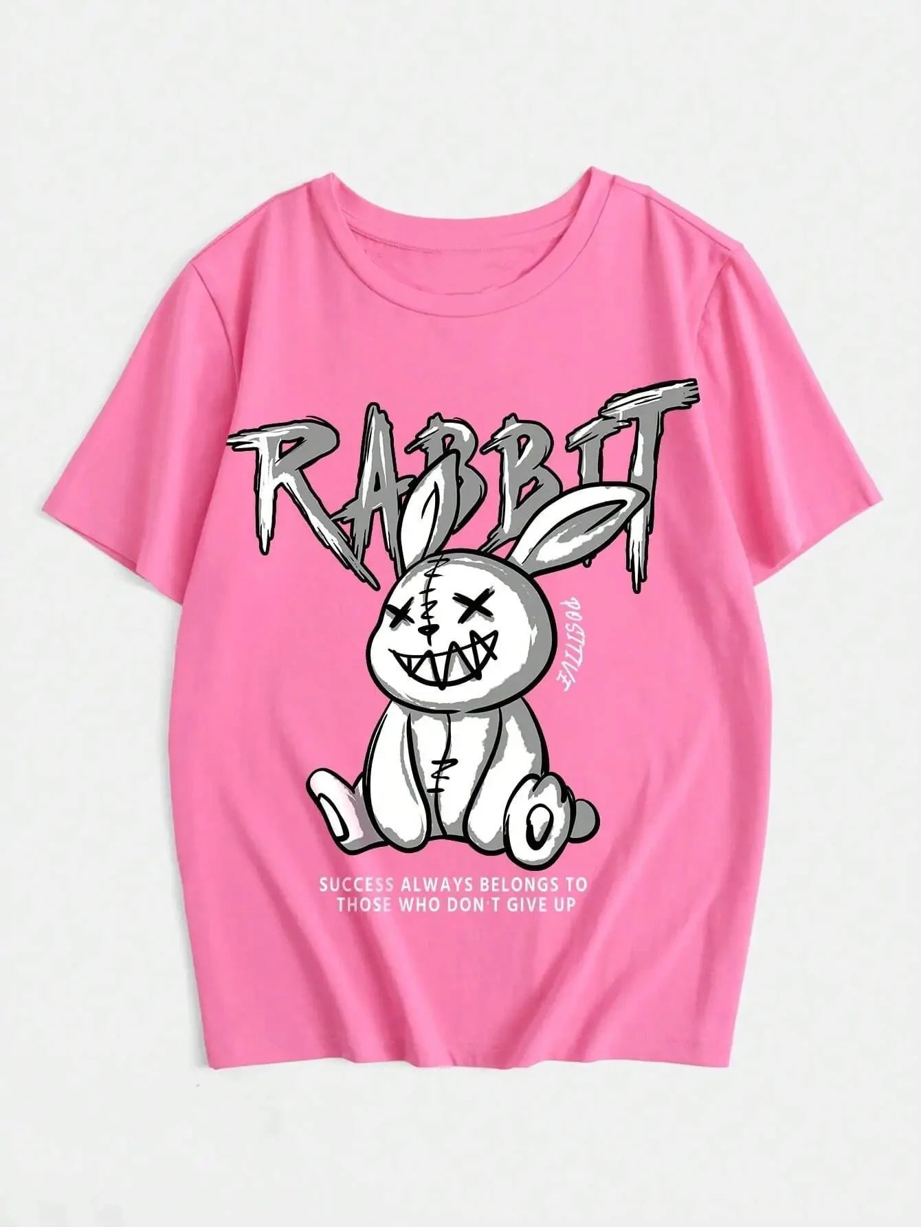Kawaii Rabbit Printed Tops Cotton T-Shirts For Womens Fashion Casual Soft Short Sleeve Loose Tees Comfortable Street Clothes