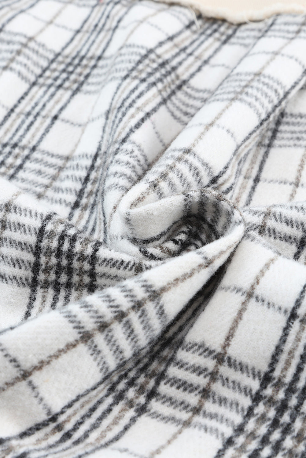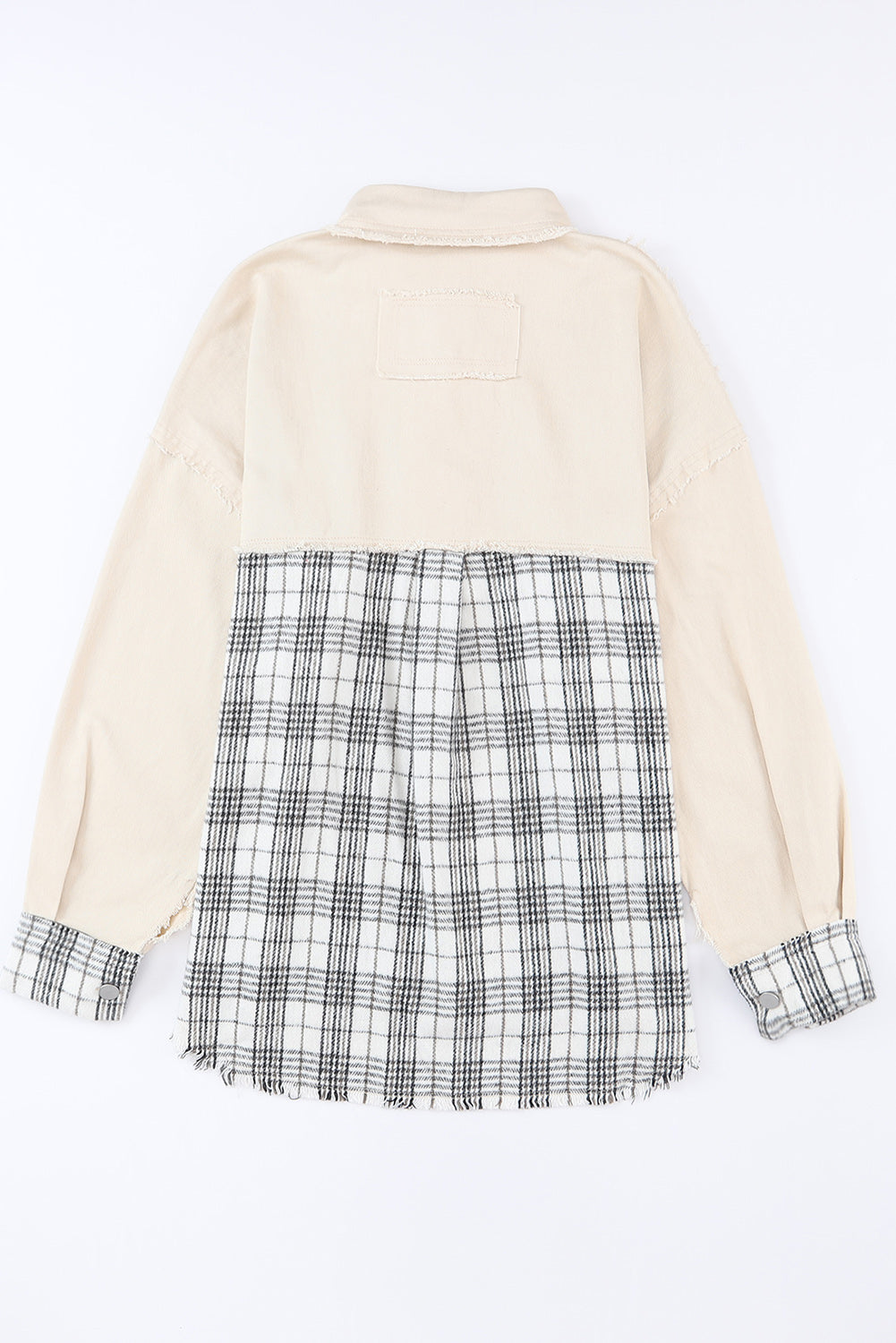 Khaki Distressed Raw Edge Plaid Patchwork Denim Jacket