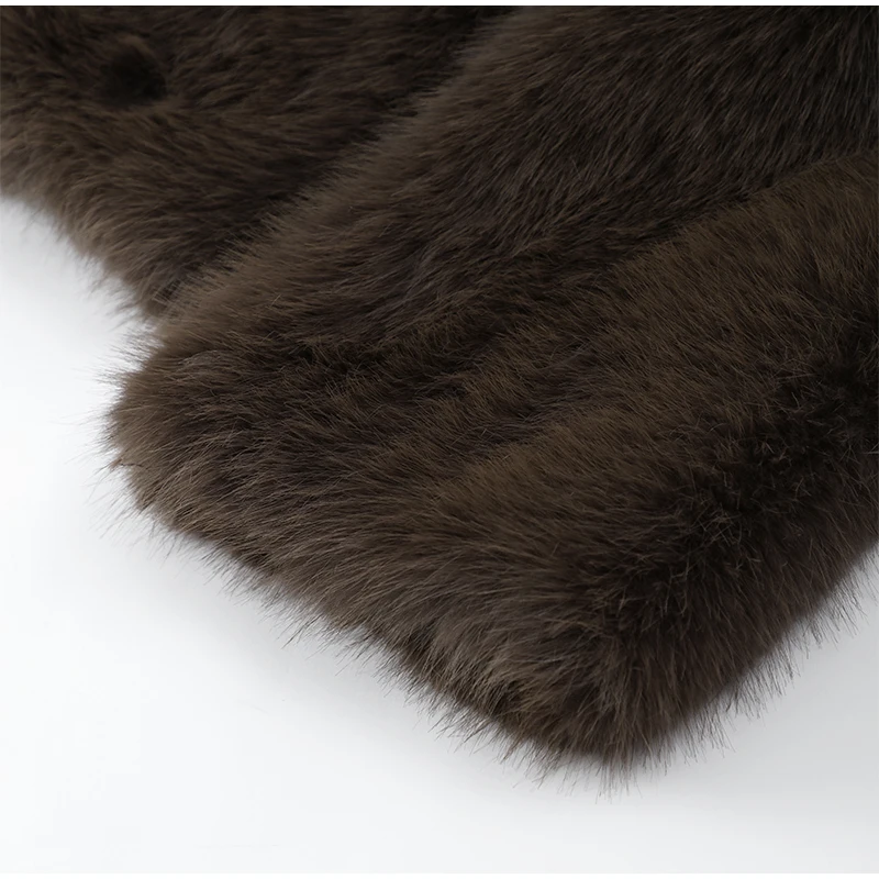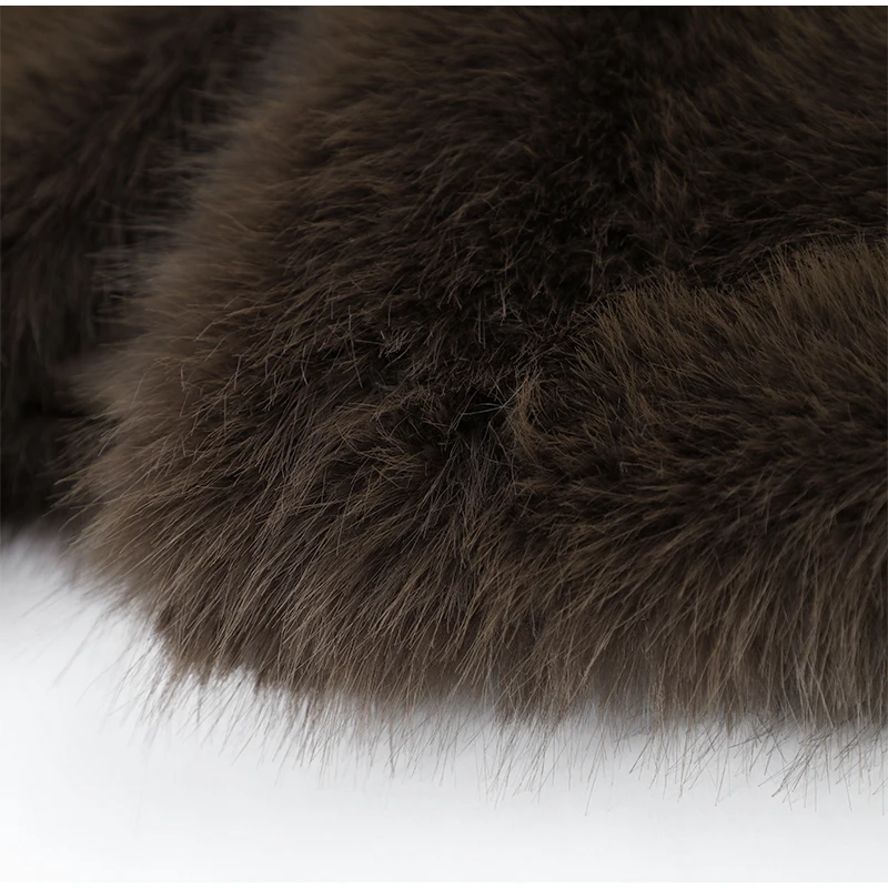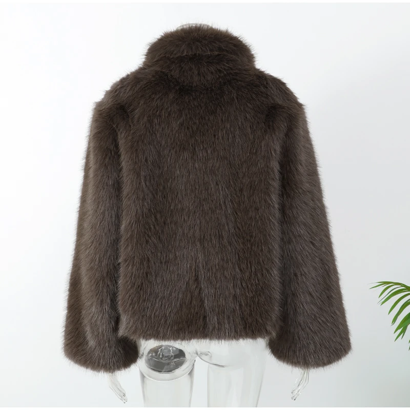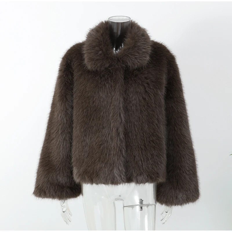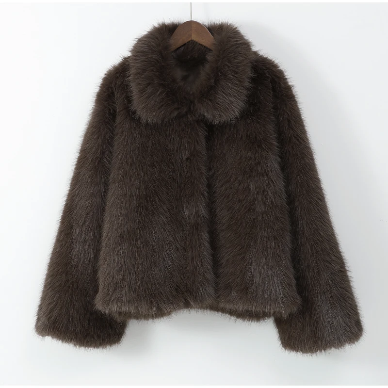 Lapel Brown Women Short Faux Fur Coat Luxurious Fluffy Long Sleeve Warm Jacket 2024 Autumn Winter Lady Solid High Street Outwear