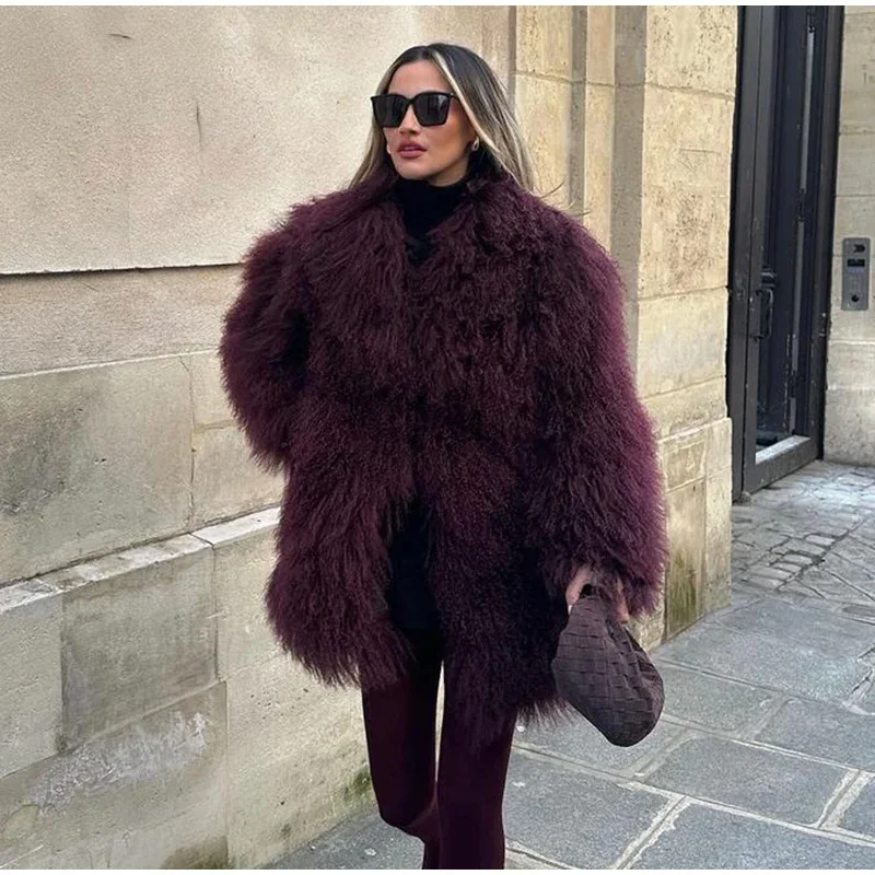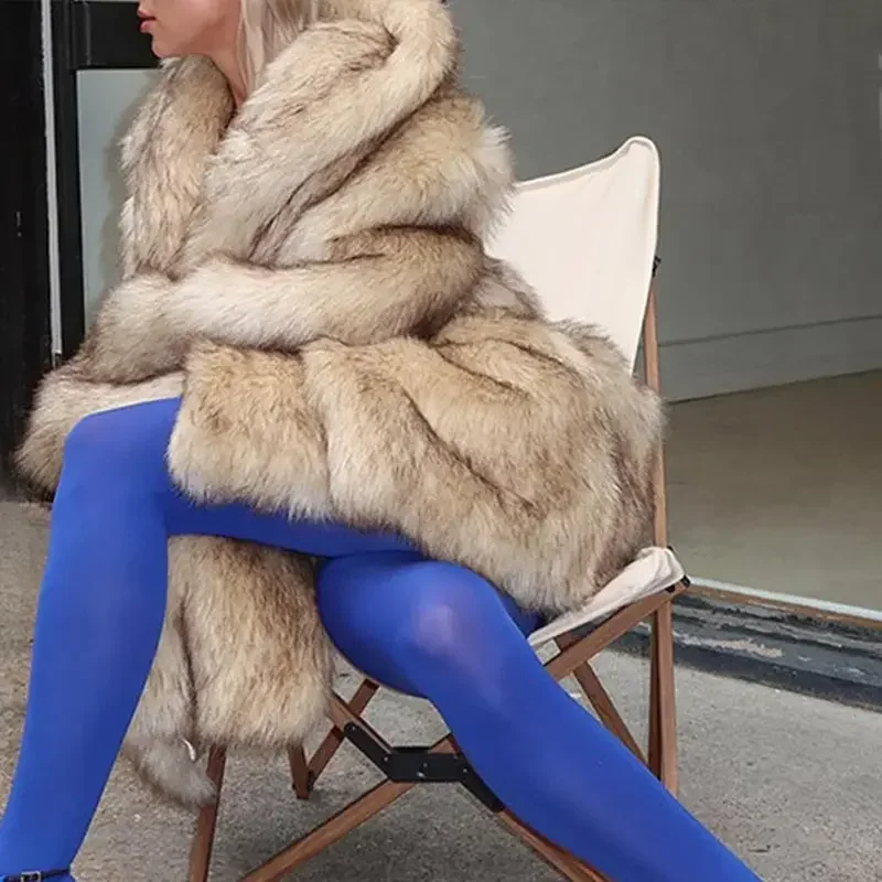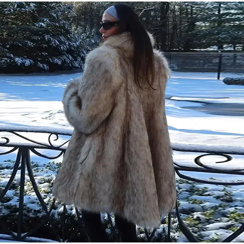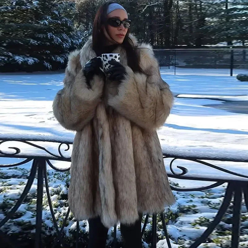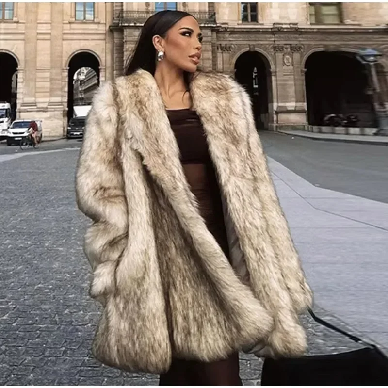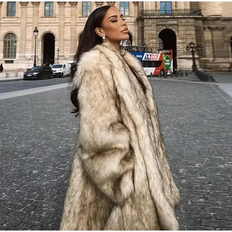 Luxury Fluffy Faux Fur Long Coat Women Lapel Long Sleeve Loose Thicken Warm Overcoat 2024 Autumn Winter Lady Fashion Streetwear
