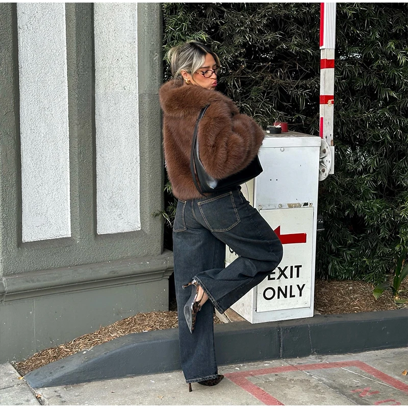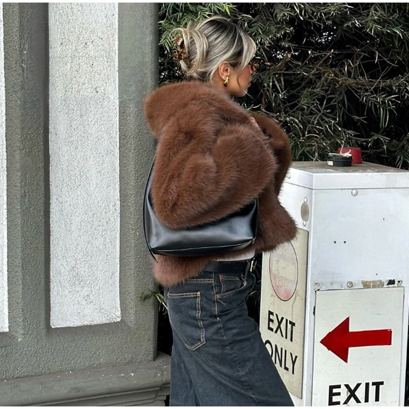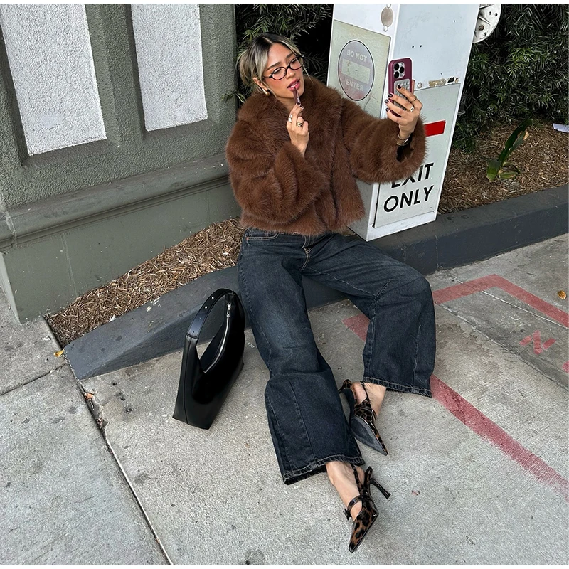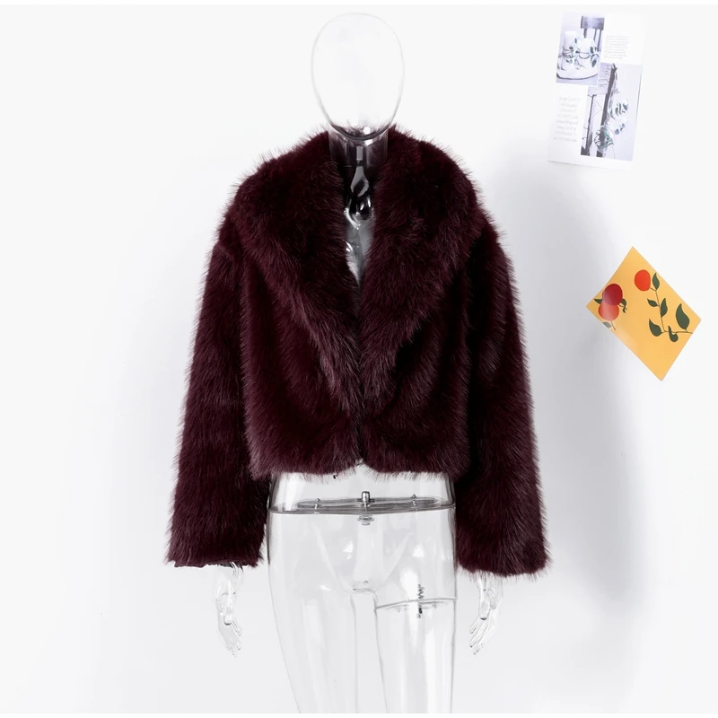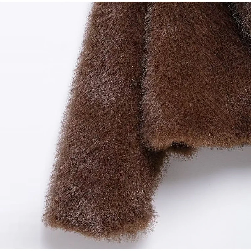 Luxury Lapel Faux Fur Short Coat For Women Casual Fluffy Full Sleeve Warm Female Jacket Autumn Winter Lady Cummuter Outerwear