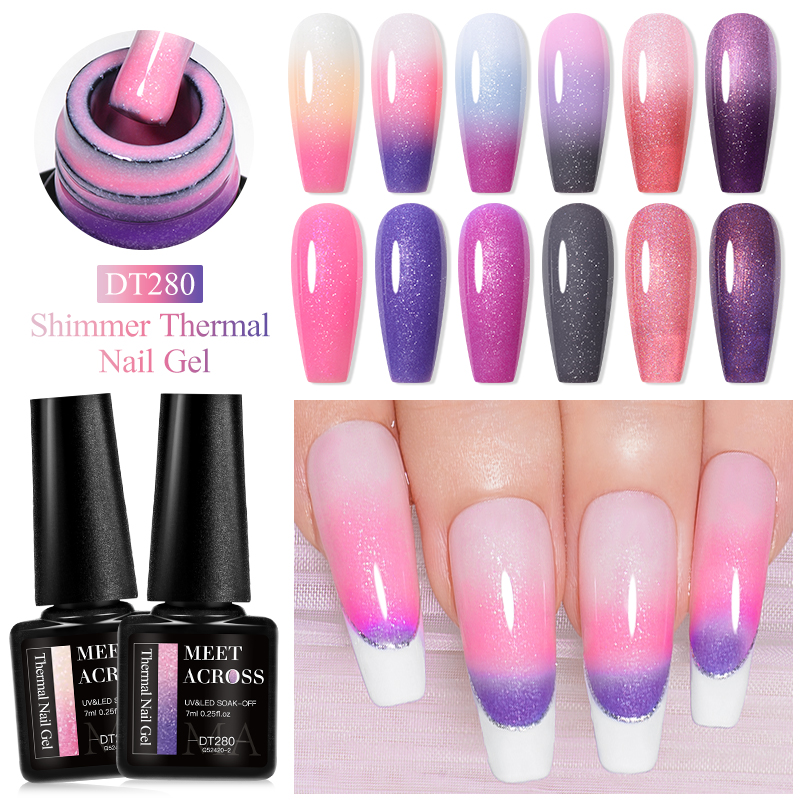 MEET ACROSS Autumn Winter Thermal Color Changing Gel Nail Polish Nude Brown 3-layers Color Changing Nail Art UV Gel Varnish 7ml