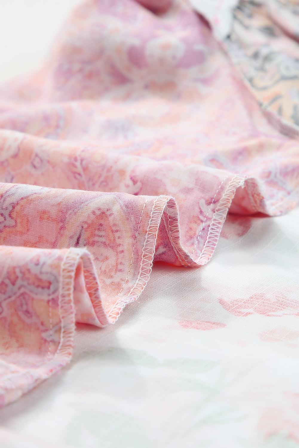 Multicolor Floral Patchwork Shirred Cuff Buttoned V Neck Blouse