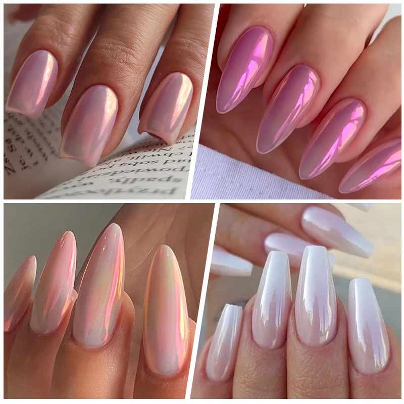 NICOLE DIARY 5g Aurora Pearl White Pink Nail Powder Chrome Pigments Metallic Rubbing Dust Moonlight Effect Nail Arts Decoration