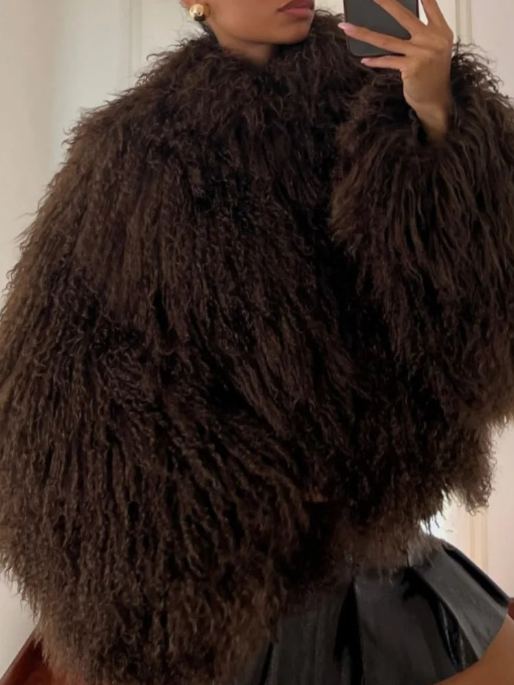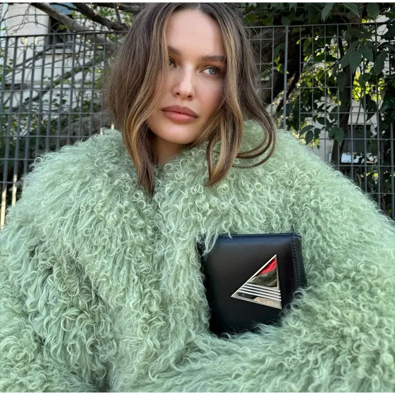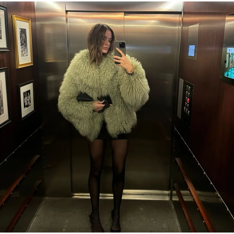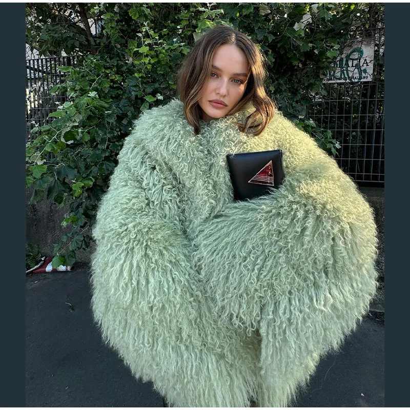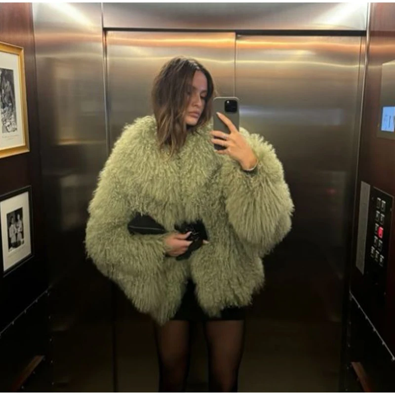 Oversize Green Faux Fur Short Jacket Coat Women Warm Thickened Fluffy Loose Long Sleeve Cardigan 2024 Winter Lady Street Outwear