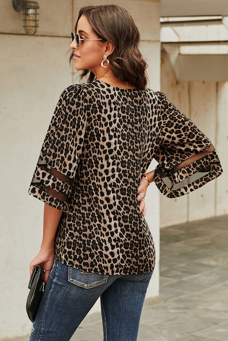 Retro V-neck 3/4 Sleeves Loose Pullover Print Shirt