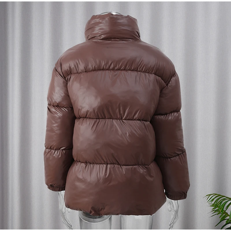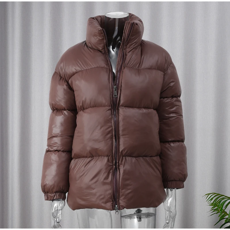 Stand Collar Elegant Solid Color Woman Down Coat Fashion Zipper Full Sleeve Pocket Short Cotton Jacket New Winter Commuter Wear