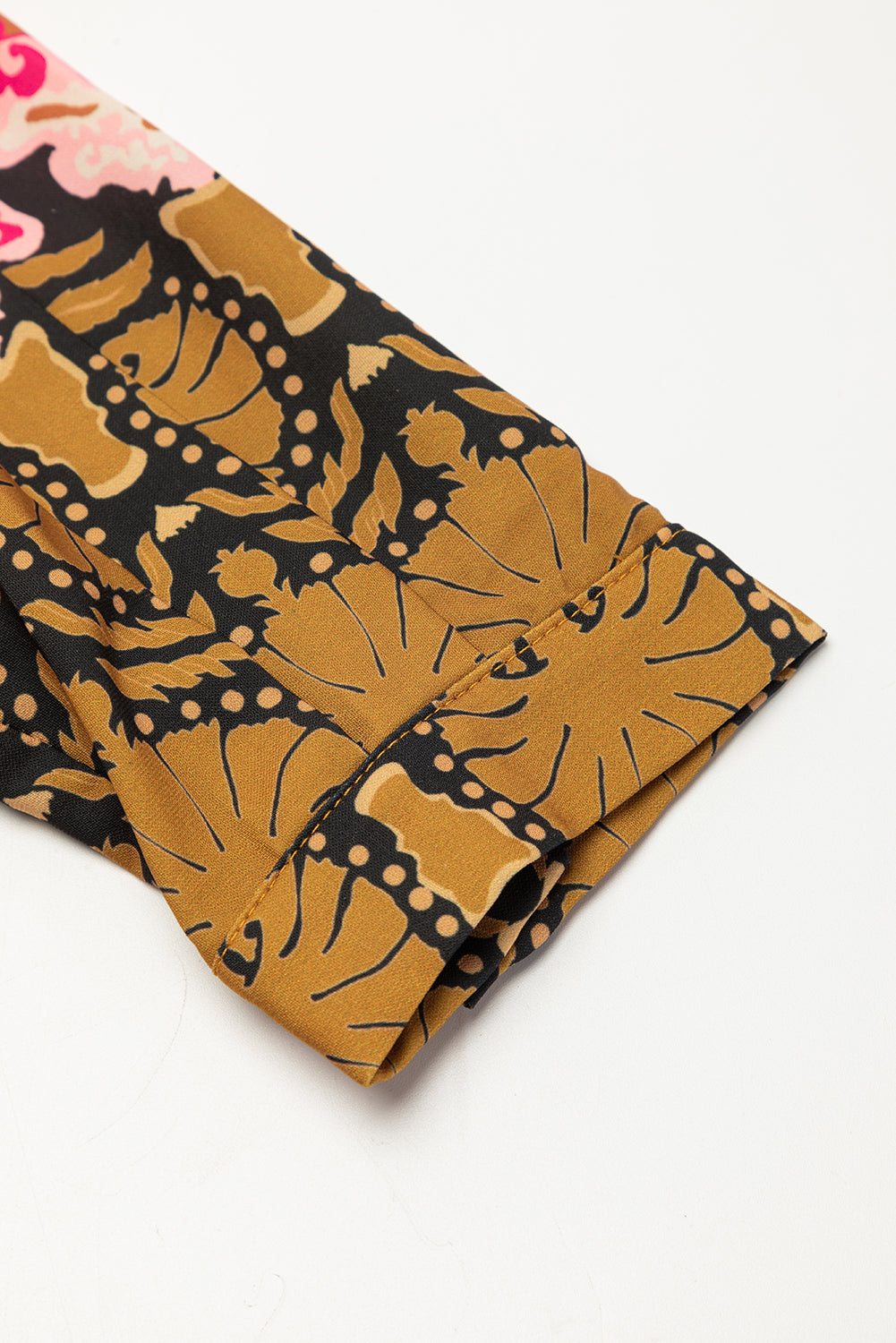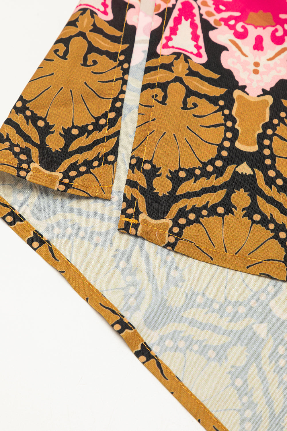 Strawberry Pink Retro Printed V Neck Bracelet Sleeve Dress