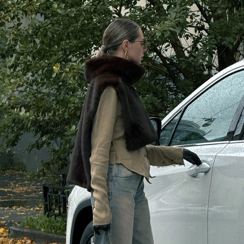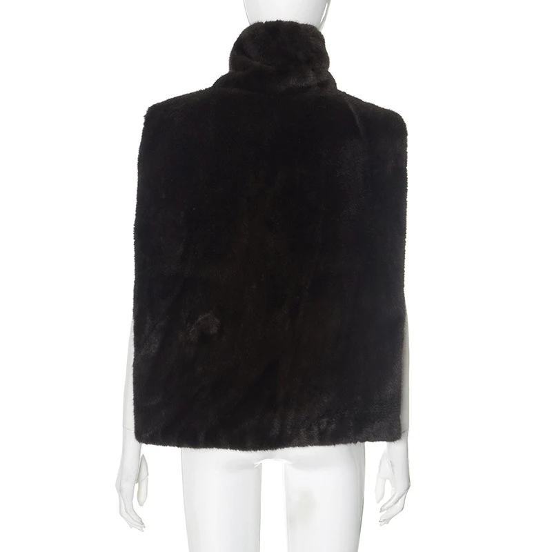 Street Faux Fur Shawl Women Fashion Turtleneck Sleeveless Crop Female Coat 2024 Autumn Winter Casual Loose Irregular Lady Coats