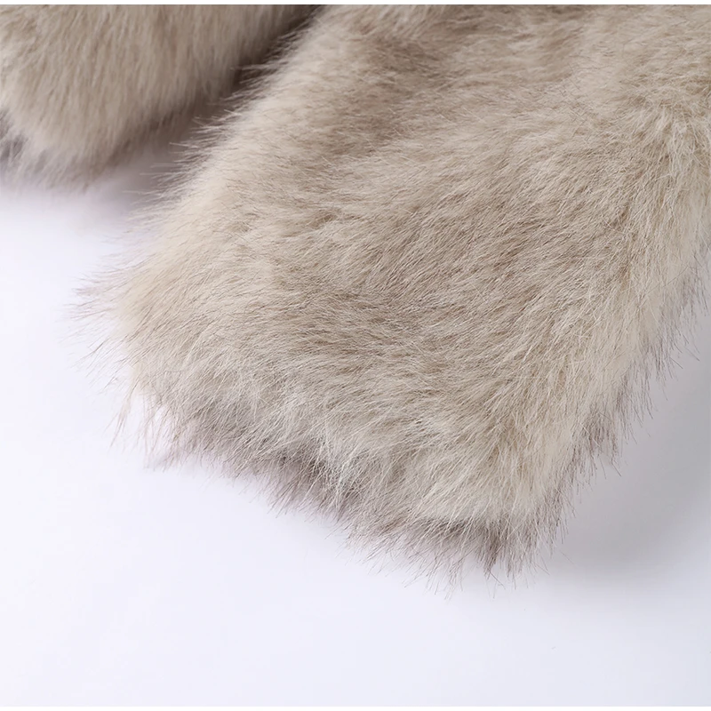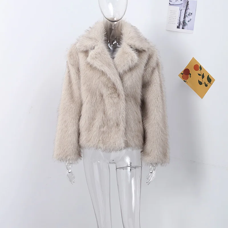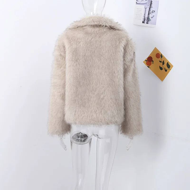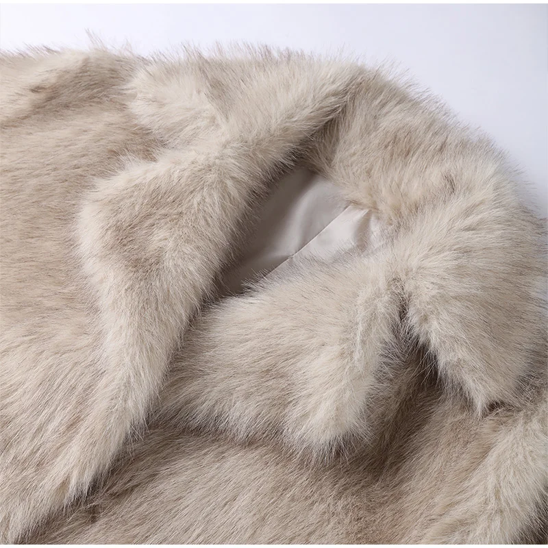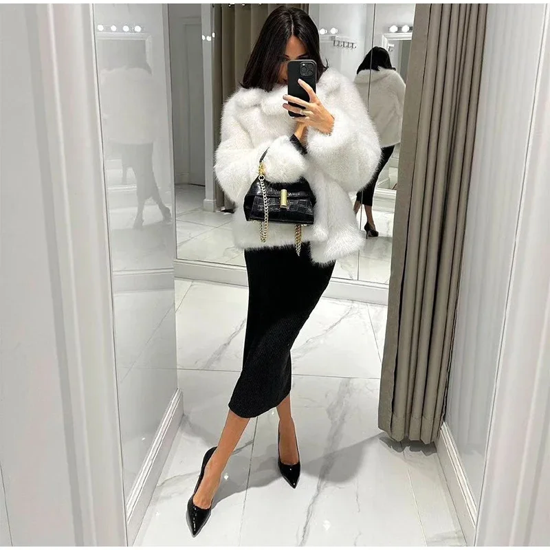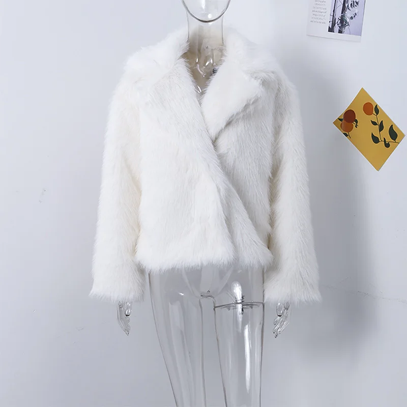 Street Women's White Faux Fur Coat Loose Lapel Long Sleeve Female Furry Jacket 2024 Autumn Winter Lady Luxury Plush Overcoat New
