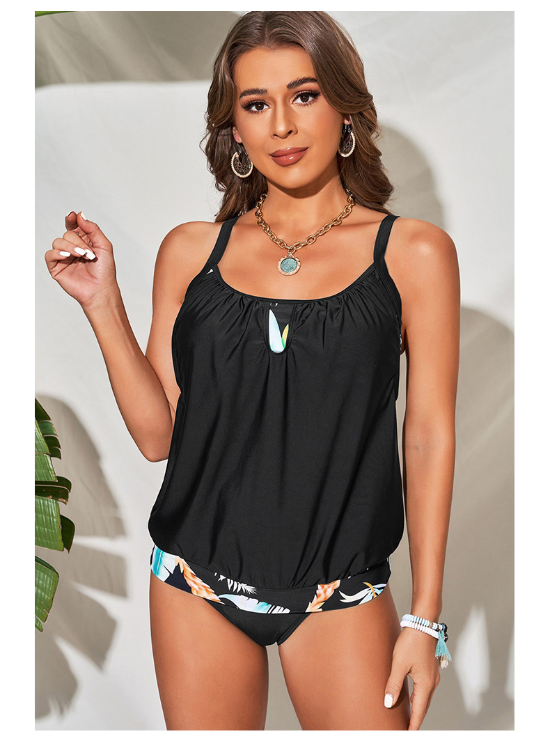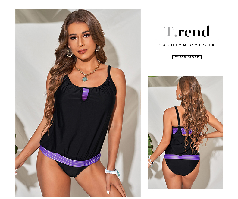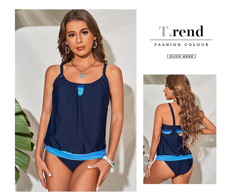 Summer New Swimsuit Women Conservative Belly Covering 2024 European and American Beach Tangini Sling Split Swimsuit Two-piece Set Women