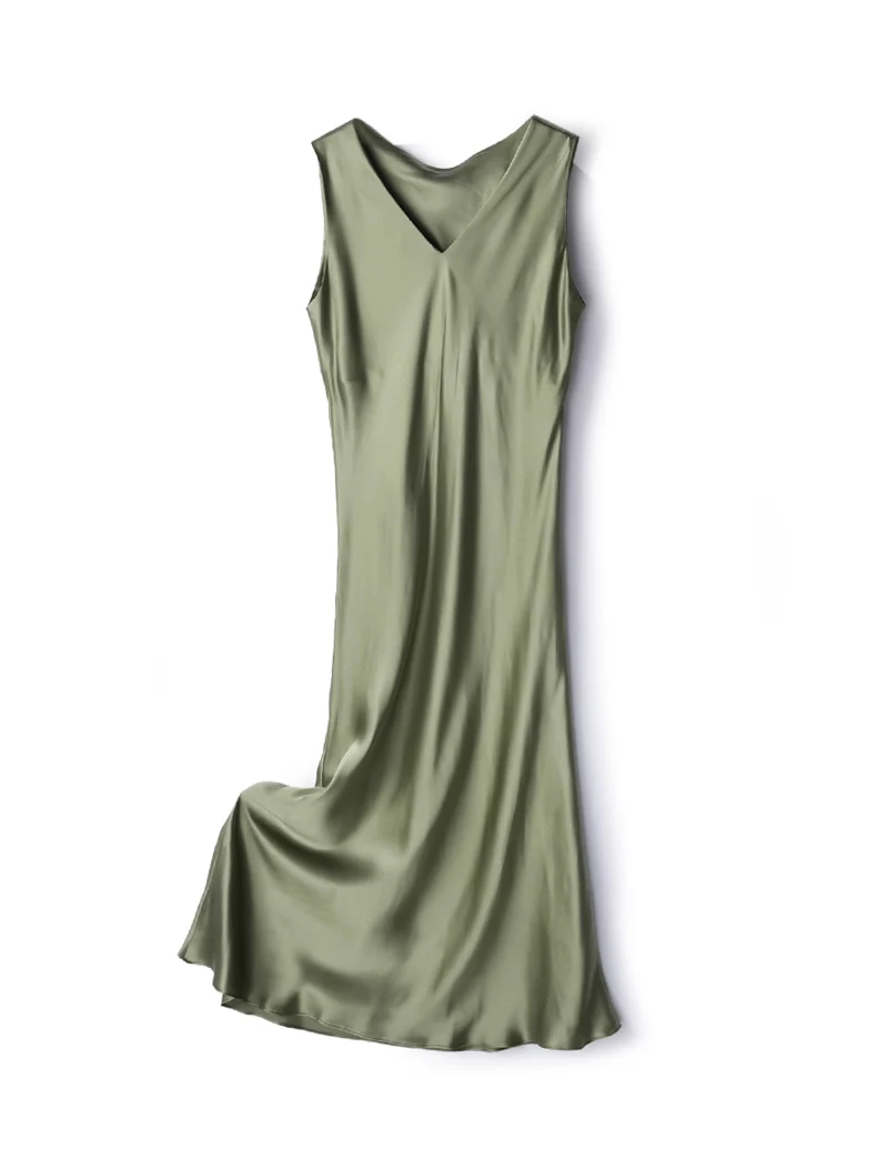 SuyaDream, Women Long Dresses, 100%Real Silk, V Neck, Sleeveless Tank Dress, 2024 Spring Summer Clothes, Green, Lavender