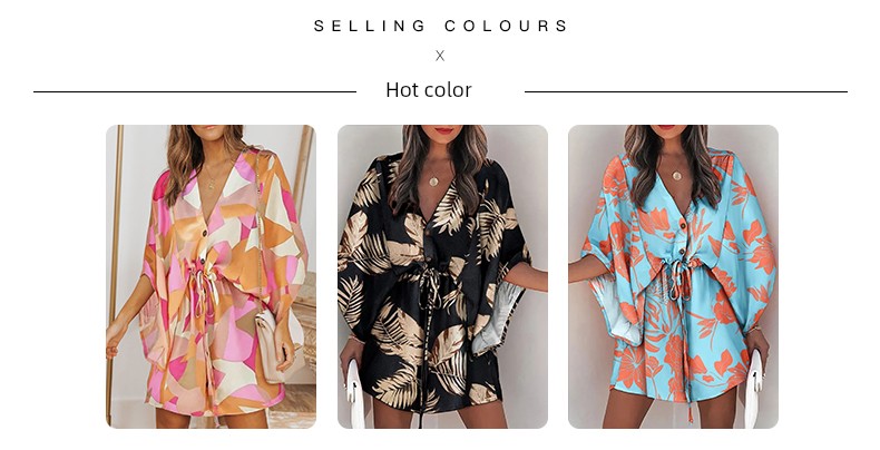 Thin Stylish Print Fashion Knee-Length Short Sleeve Dress