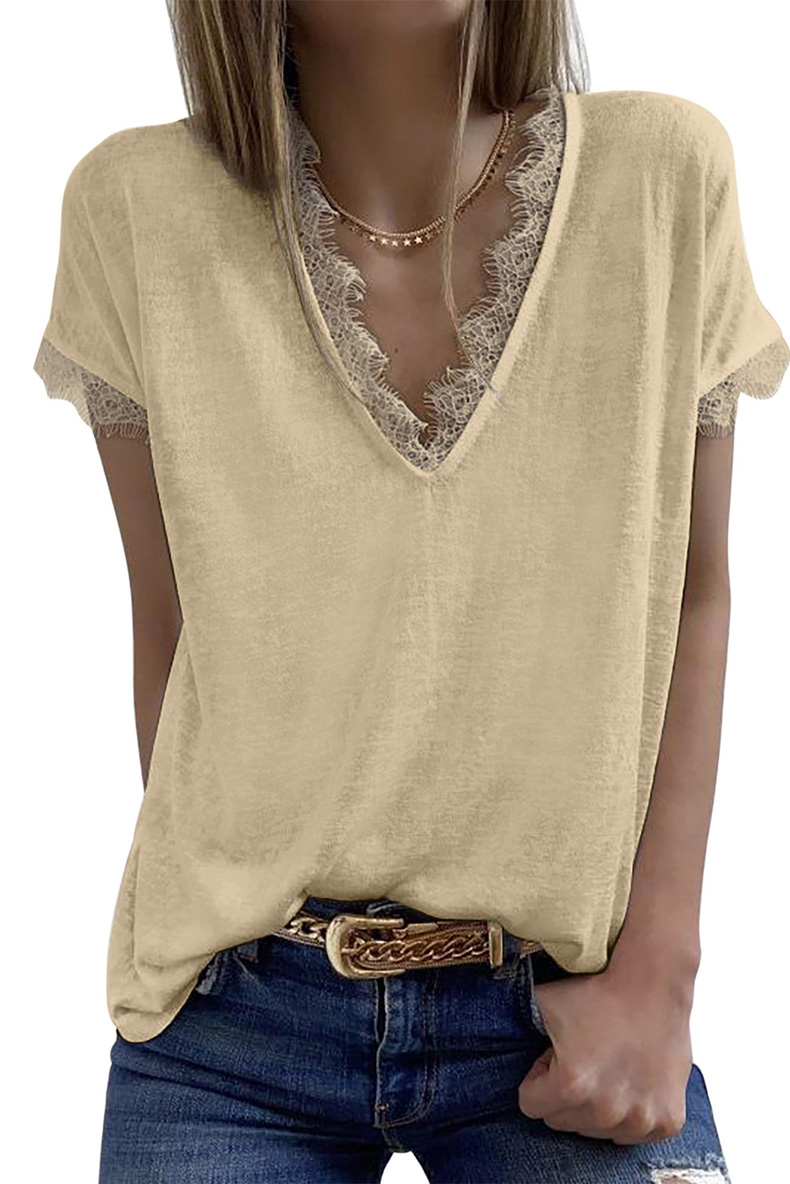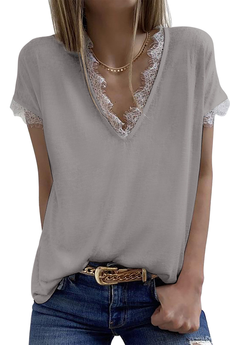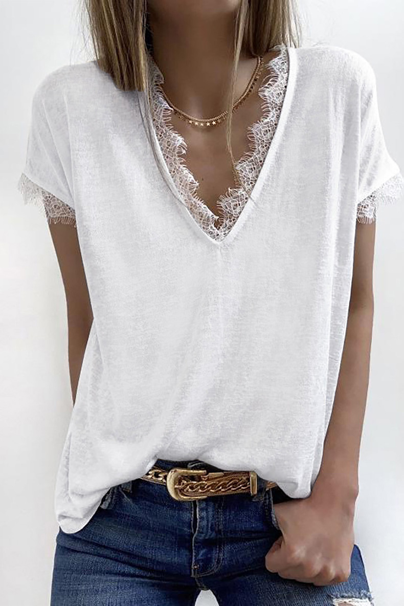 V Neck T-shirt European and American Leisure Thin Half Sleeve Pullover Lace