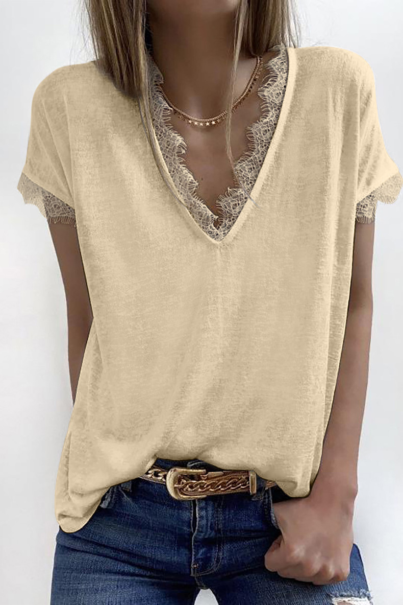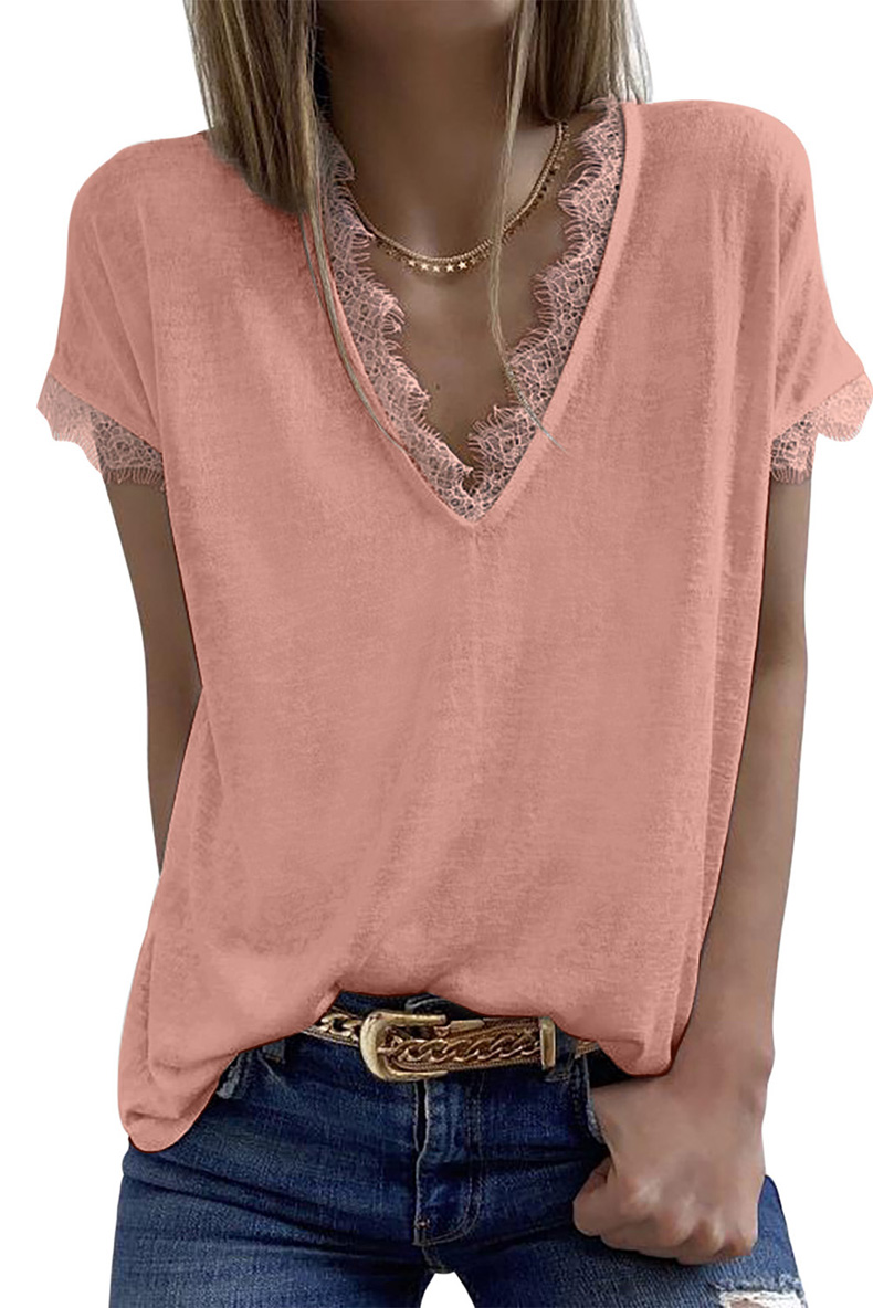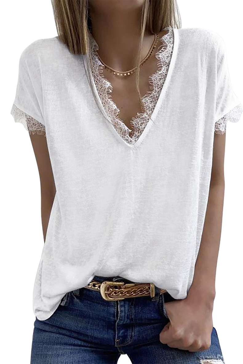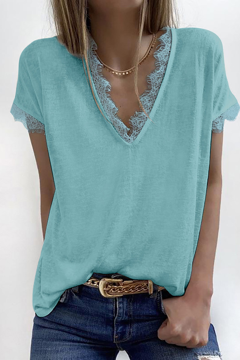 V Neck T-shirt European and American Leisure Thin Half Sleeve Pullover Lace